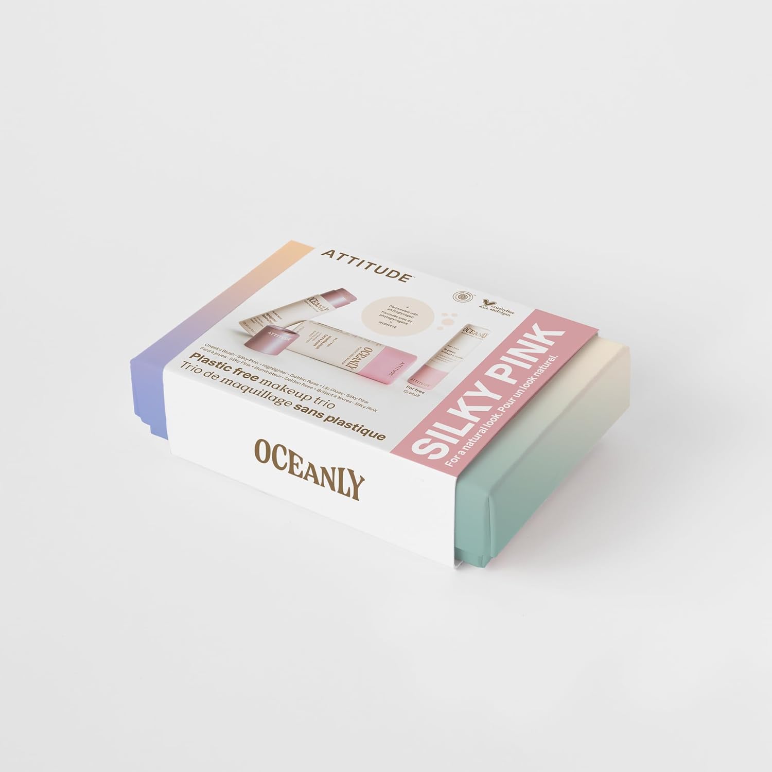ATTITUDE Silky Pink Makeup Box Set, EWG Verified, Titanium Dioxide-Free, Plastic-free, Plant and Mineral-Based Ingredients, Vegan and Cruelty-free Beauty Products, Set of 3 Makeup Sticks