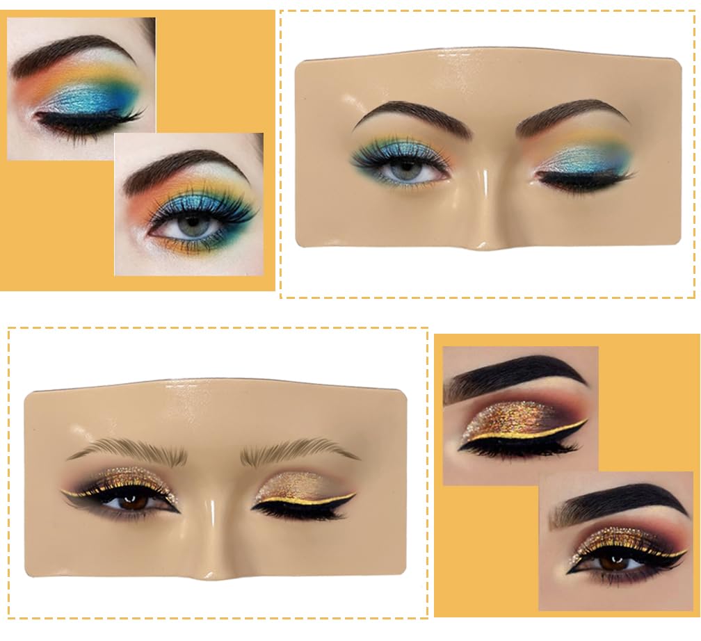 - Easy to Clean & Reused: Made of a textured soft bionic silicone, our makeup board are as smooth, soft and odorless as real skin. Any makeup finish on it is real as on your own face. Stop practicing on your face, use it instead! Remove stains and cosmetics with makeup remover oil after use, then rinse well with water. The eyeshadow practice eyes is not easily deformed, durable and can be reused more than 10000 times