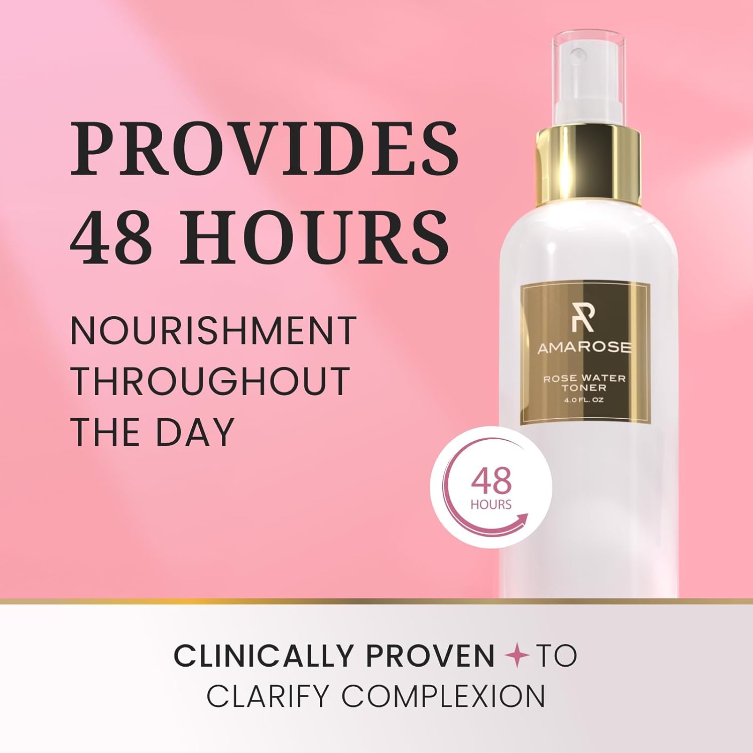 - SOOTHING TONER: Elevate your skincare routine with the luxurious Amarose rosewater face mist. Immerse yourself in the soothing essence of rose water, renowned for its calming properties.