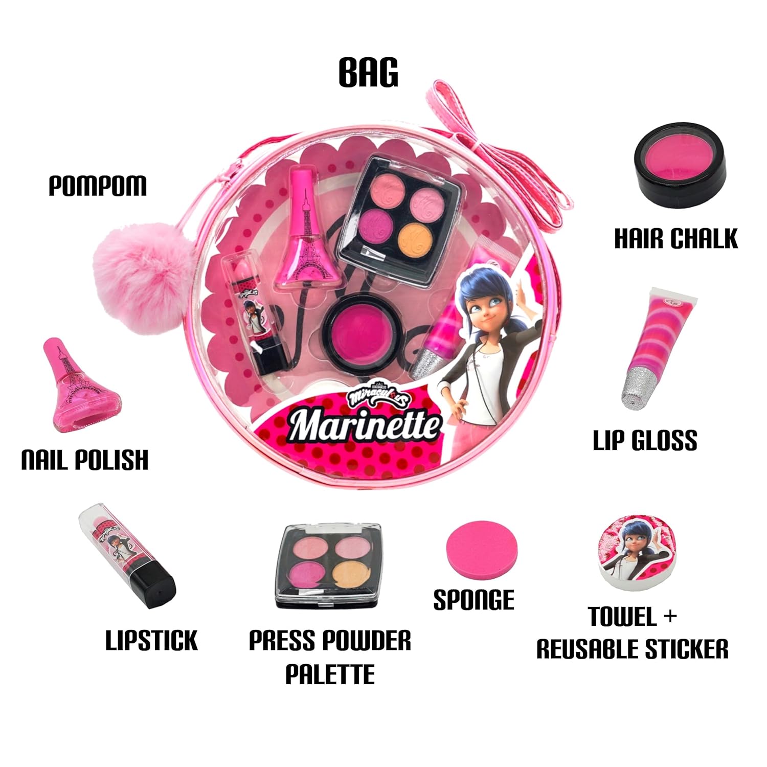 - Transform into Marinette: Experience the enchantment of "Miraculous: Tales of Ladybug and Cat Noir" with this 10-piece kids' makeup set. Designed to bring out the Marinette in every child, this set inspires creativity and imaginative play, allowing young fans to embrace their favorite character's vibrant spirit.