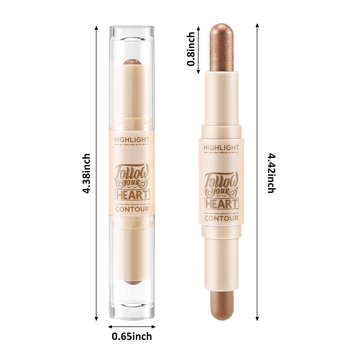 - Dual-Ended Design: 2-in-1 bronzer contour stick with a matte contour pen on one end and a shimmer highlighter pencil on the other. Available in 3 color choices. Spiral design for easy application.