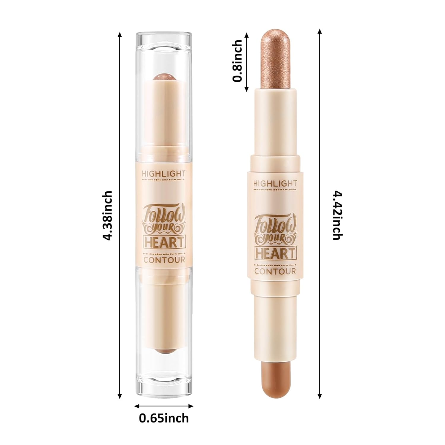 - Dual-Ended Design: 2-in-1 bronzer contour stick with a matte contour pen on one end and a shimmer highlighter pencil on the other. Available in 3 color choices. Spiral design for easy application.