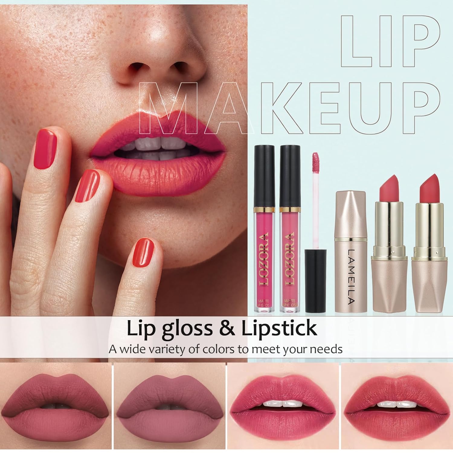 - 【All In One Makeup Kit】 Contains a wide variety of shades and styles, to let you find the look that suits you best. This cosmetics include 20Color Eyeshadow, Concealer, Liquid Foundation, Face Makeup, Lip Gloss, Lipsticks, Eyebrow Mascara Mascara,Eyeliner Foundation Makeup Brush, Powder Puff, Primer, Cosmetic Brush, Gift Box.The most sweetest present for your beloved. All women's essentials in one elegant box