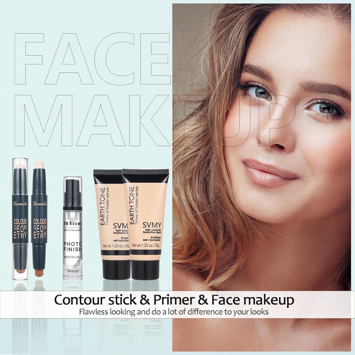 All in One Makeup Kit for Women Full Kit Includes Palette Foundation & Face Primer, Makeup Brush Makeup Sponge, Eyebrow Soap, Winged Eyeliner Stamp 20 Colors Eyeshadow Gift Set for Women, Girls & Teen