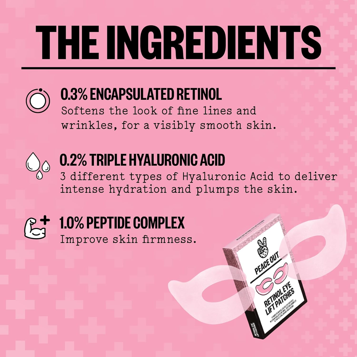 PEACE OUT Retinol Eye Lift Patches to Lift, Firm and Revitalize Tired Eyes, 360° Coverage Targets Fine Lines & Wrinkles, 5 Pack
