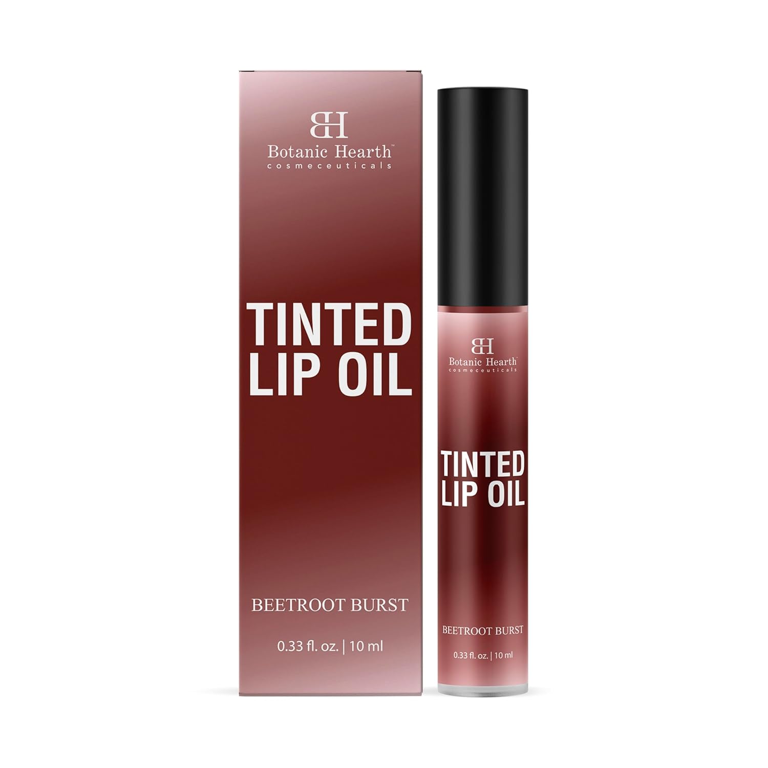 - Natural Tint & Shine: Botanic Hearth Tinted Lip Oil helps add a beetroot-colored maroon tint to lips. It helps make lips glazed & plump and aids in delivering natural shine over continued usage