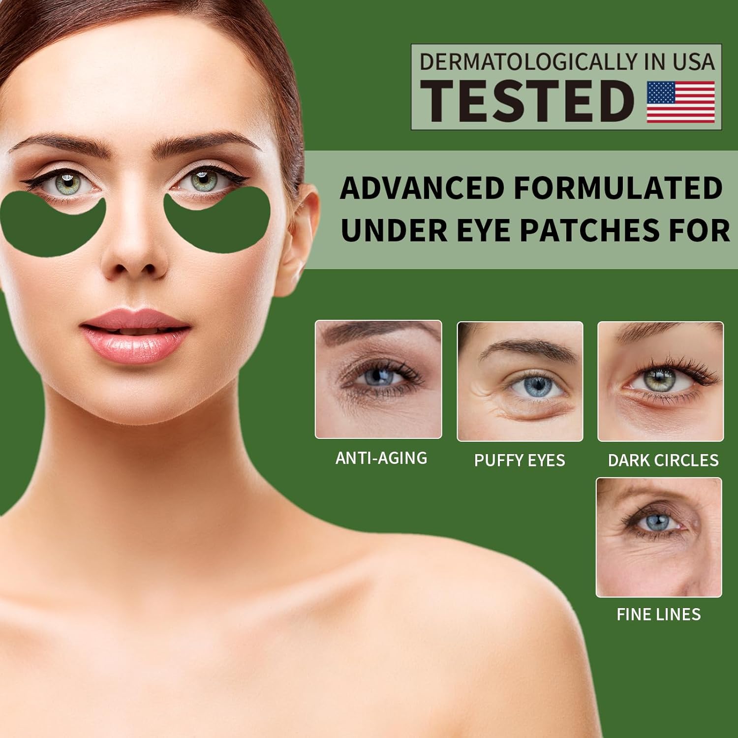- Premium Ingredients Eye Mask Skincare: These eye patches for wrinkles feature holy grail ingredients, including seaweed & green tea extract, caffeine, peptides, collagen, pumpkin seed extract, sodium hyaluronate, avocado oil, gelidiella acerosa extract, camellia sinensis leaf extract, vitamins, known for their age-defying properties. As a result, these gold under eye patches provide all-in-one nourishment and treatment, targeting under eye puffiness, dark circles, and other signs of aging.