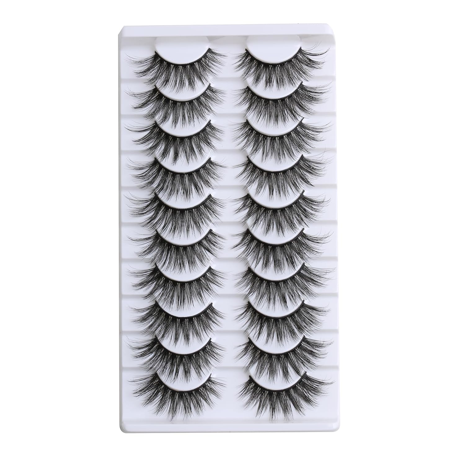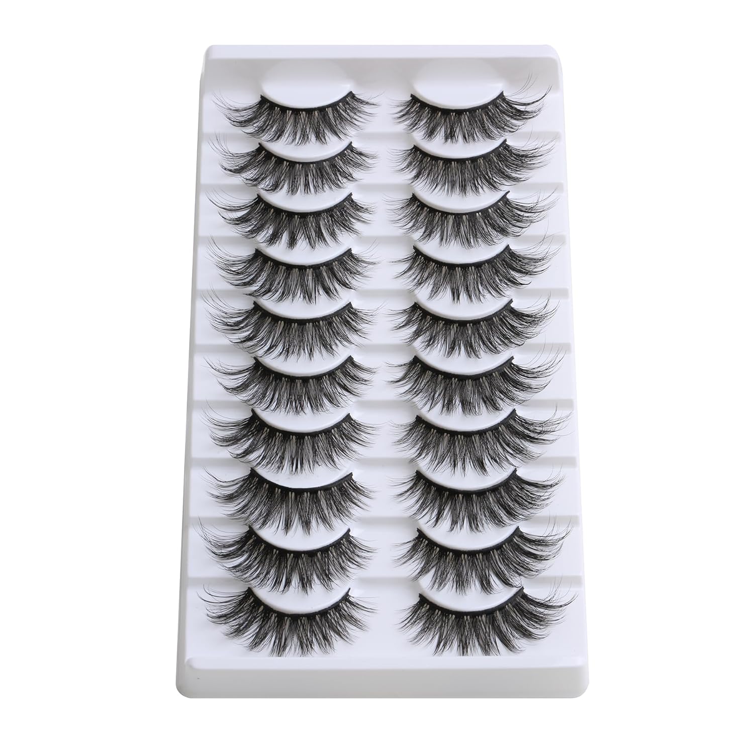 SUNWELL False Eyelashes 16mm Mink Lashes Cat Eye Faux Mink Lashes 8D Fluffy Strip Lashes Soft Wispy Luxury Volume Fake Eyelashes 10 Pairs Pack