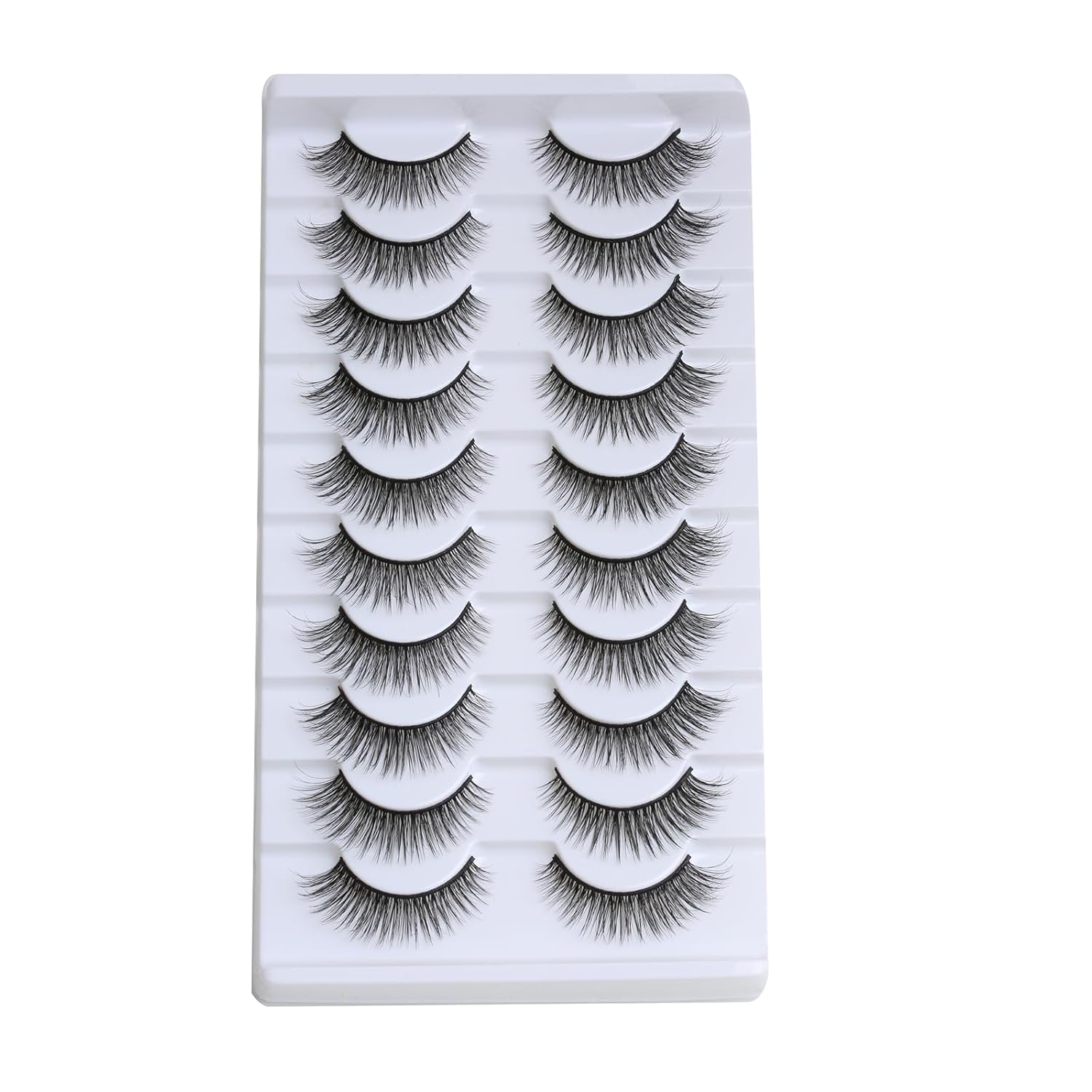 SUNWELL False Eyelashes 12mm Mink Lashes Natural Look Cat Eye Faux Mink Lashes 3D Fluffy Soft Luxury Volume Fake Eyelashes 10 Pairs Pack
