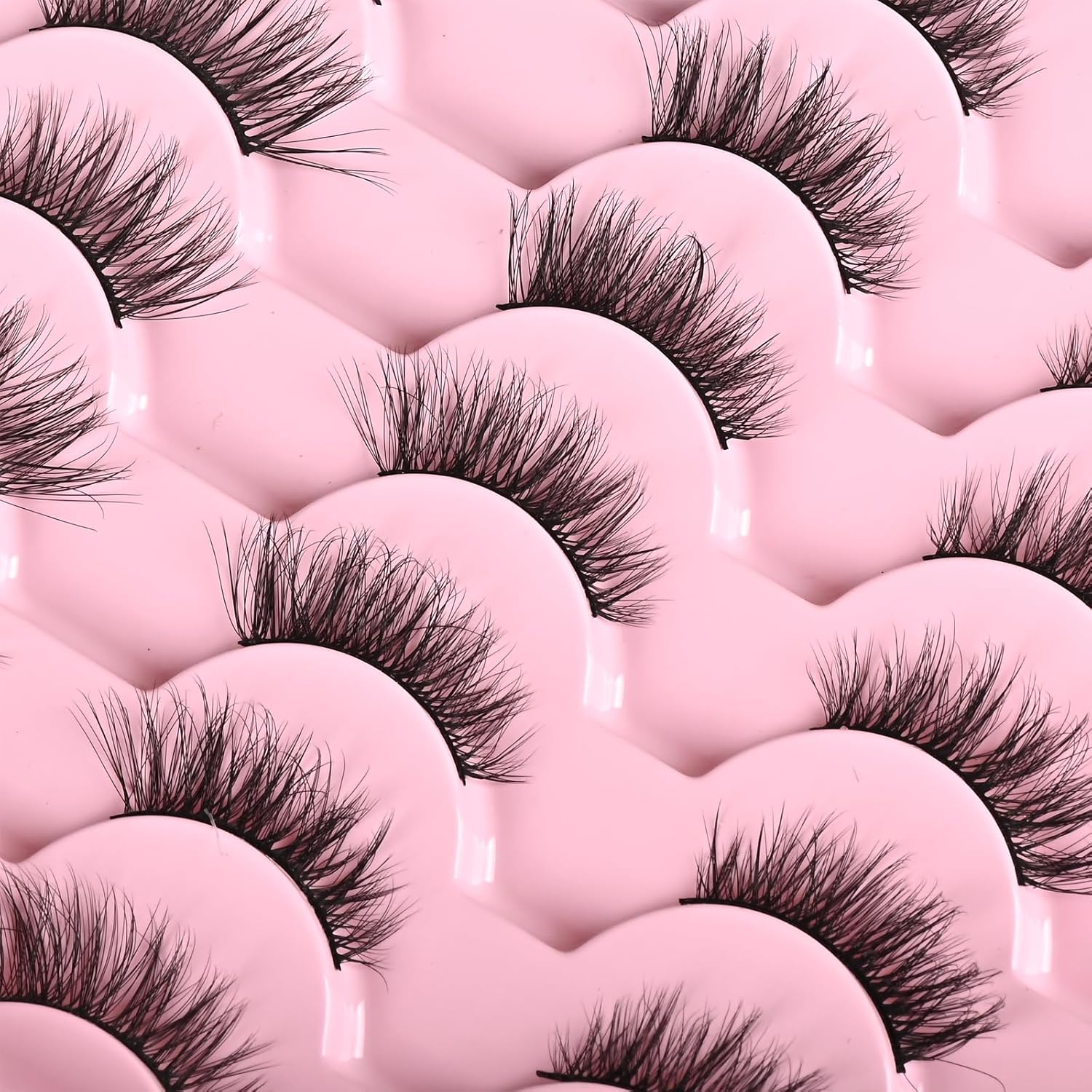 FARRED Half Lashes Natural Look Short Eyelashes Cat Eye Lash Fluffy Natural Lashes Wispy False Eyelash 14 Pairs Faux Mink Strip Eye Lashes Pack for Daily Makeup (F15 | 9-14mm)