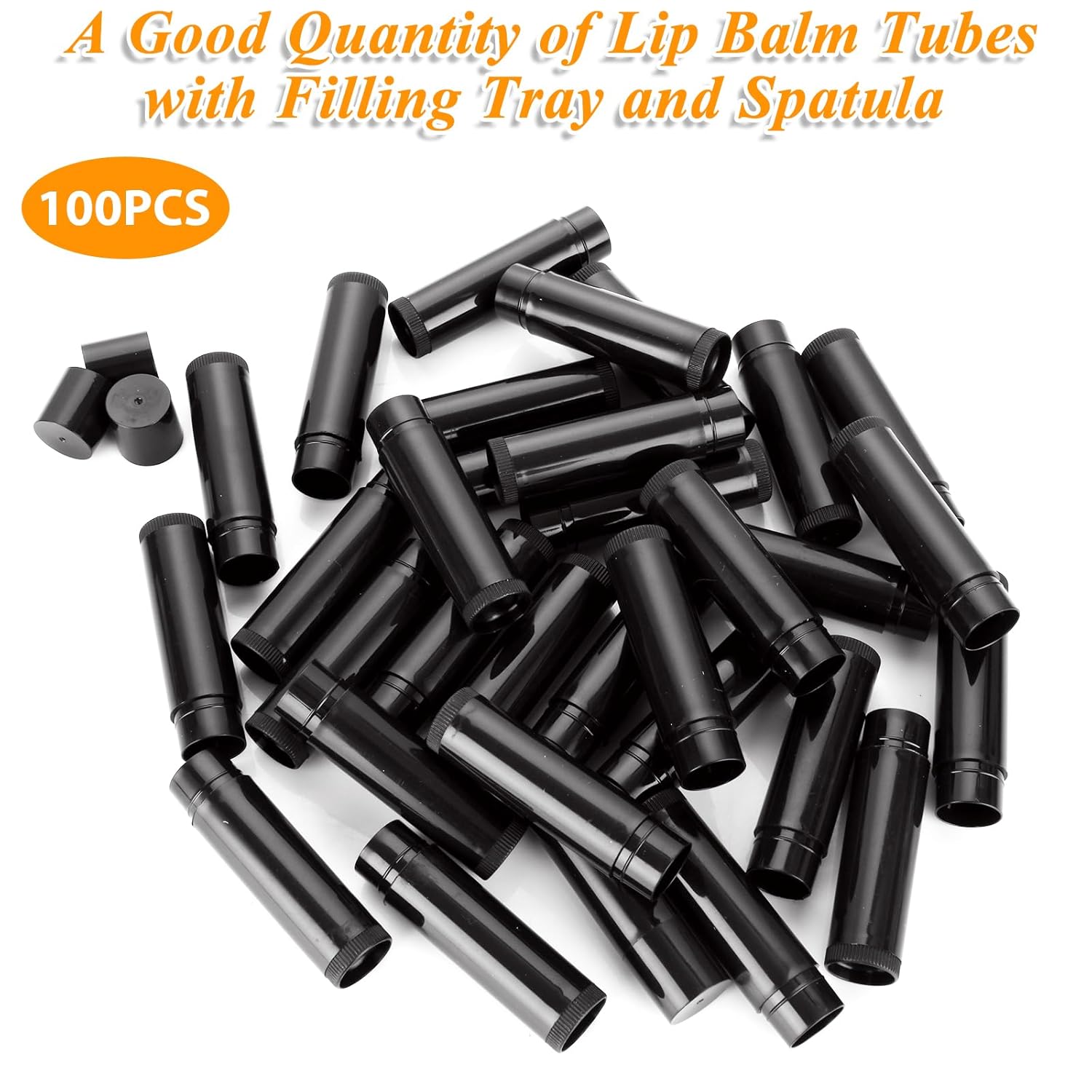 - EASY TO USE - The lip balm containers have a push wheel mechanism that effortlessly pushes the lip balm up to the top for quick and easy application on the lips. You will need to prepare the filler tray and spatula in advance. Simply insert all 100 empty lip balm tubes into the filling tray and start pouring. Use the spatula to spread the lip balm mixture evenly. Let dry and you're done