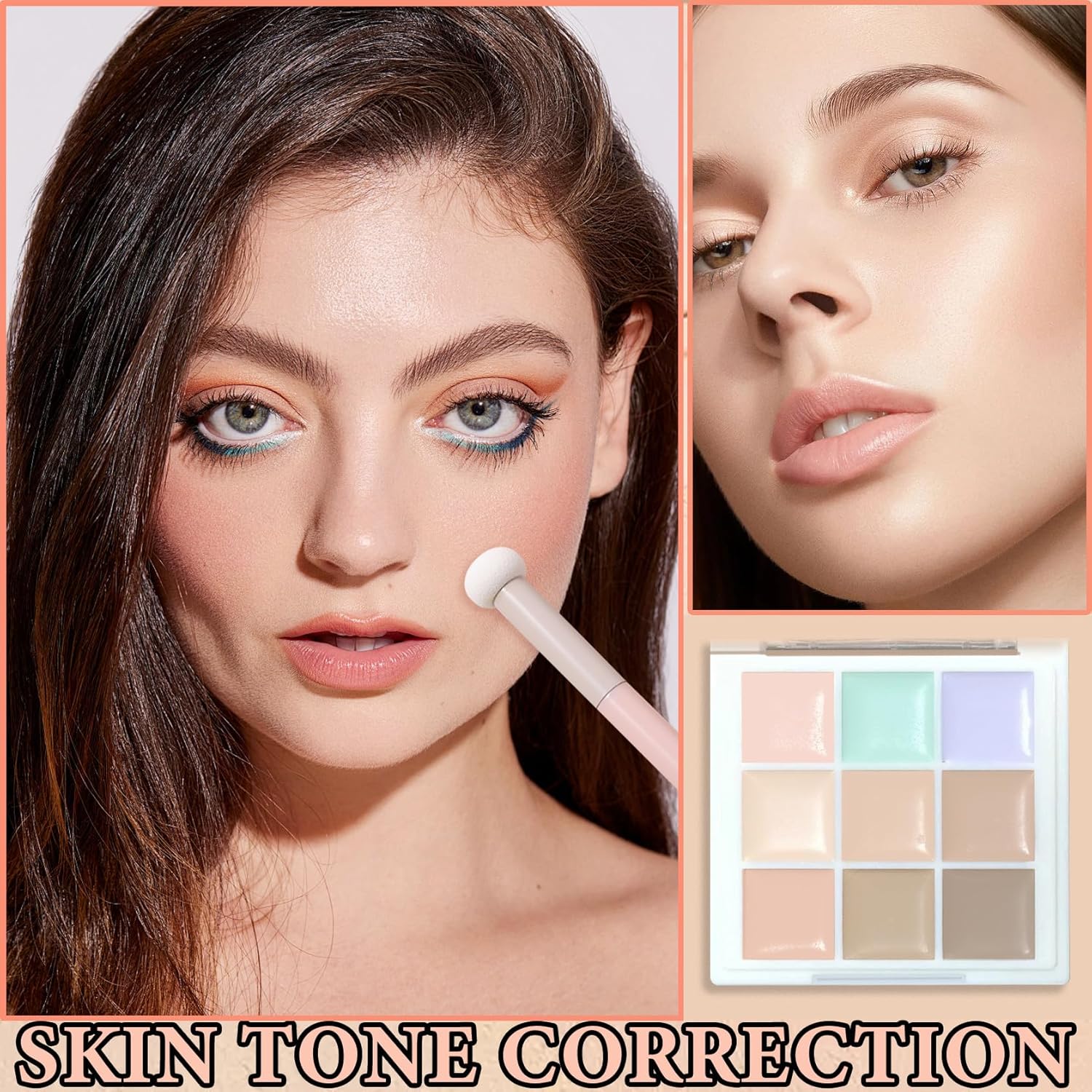 9 Colors Concealer Contour Palette,Correcting Concealer Makeup Palette 9 In 1 Contouring Foundation Cream Contour Palette for Redness,Dark Circles,Blemish,Acne(04#)