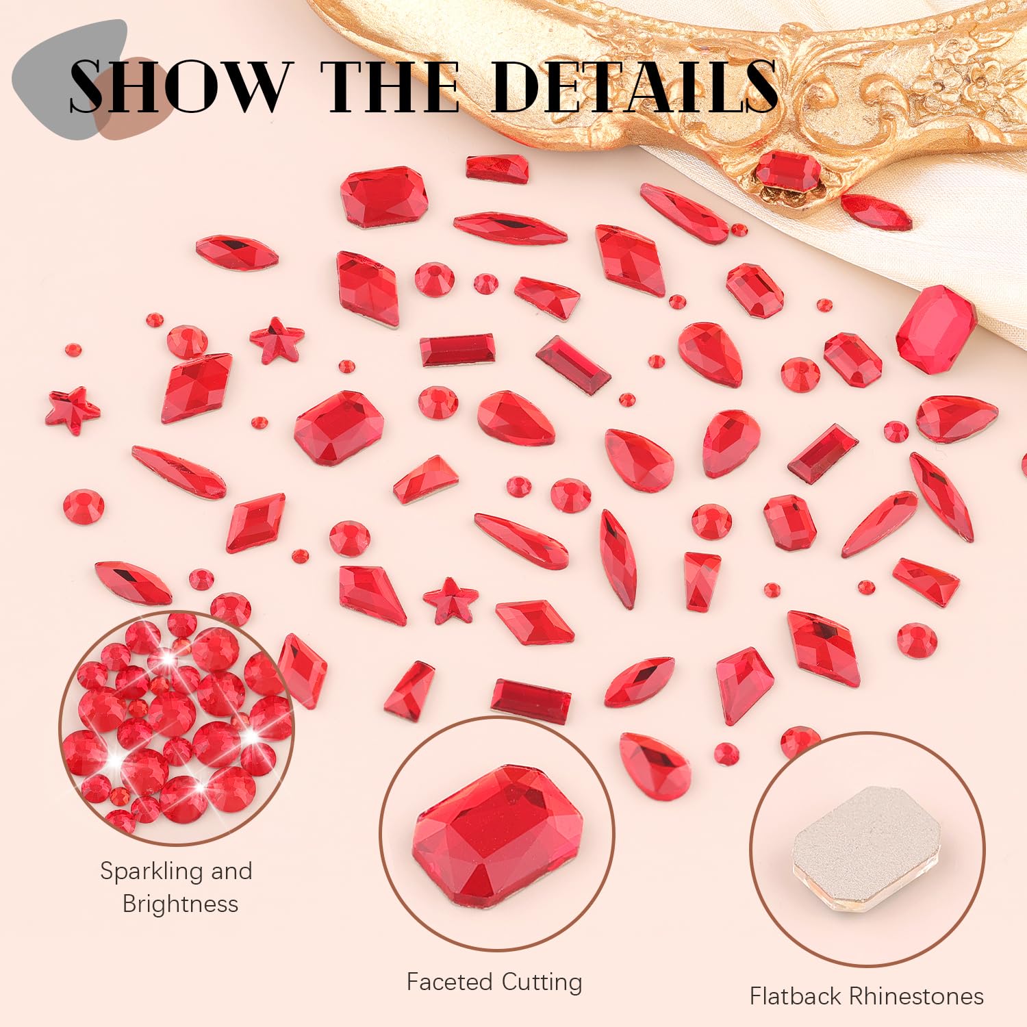 - ๐PACKAGE CONTENT -- The package contains 120Pcs multi shapes flatback gems crystal and 3100Pcs 1.5-4mm round beads, totally 3220Pcs Red rhinestones. Additionally, 1 tweezers for large size gems and 1 pickup pen for small size gems. This rhinestones kit makes it easy for you to make any nail art you like, and will bedazzle your acrylic nails!