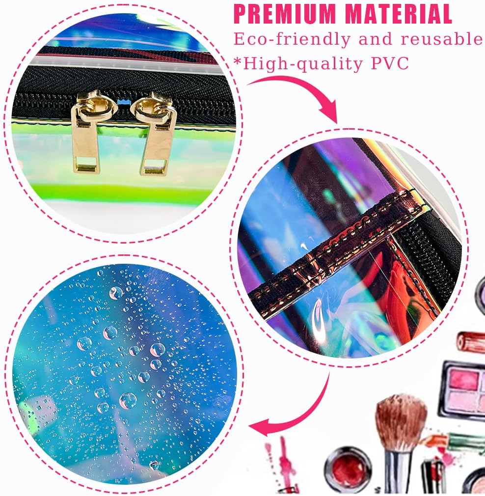 - 🌷【Wide Range of Uses】Our transparent holographic cosmetic bag can not only be used as a storage bag,waterproof bag,gift bag,frequently used item bag,but also can be used to store cash,glasses,keys,portable batteries,etc.This waterproof and dustproof tote makeup bag keeps everything safe and prevents liquid leaks