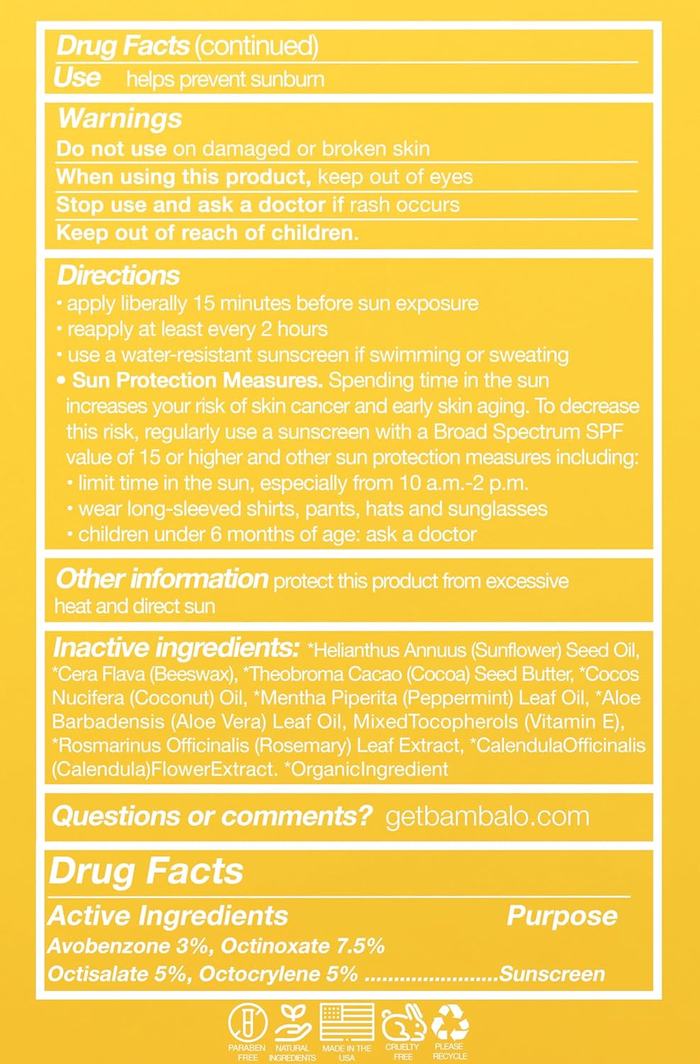 - Sun Protection Factor : 15 Sun Protection Factor (SPF)