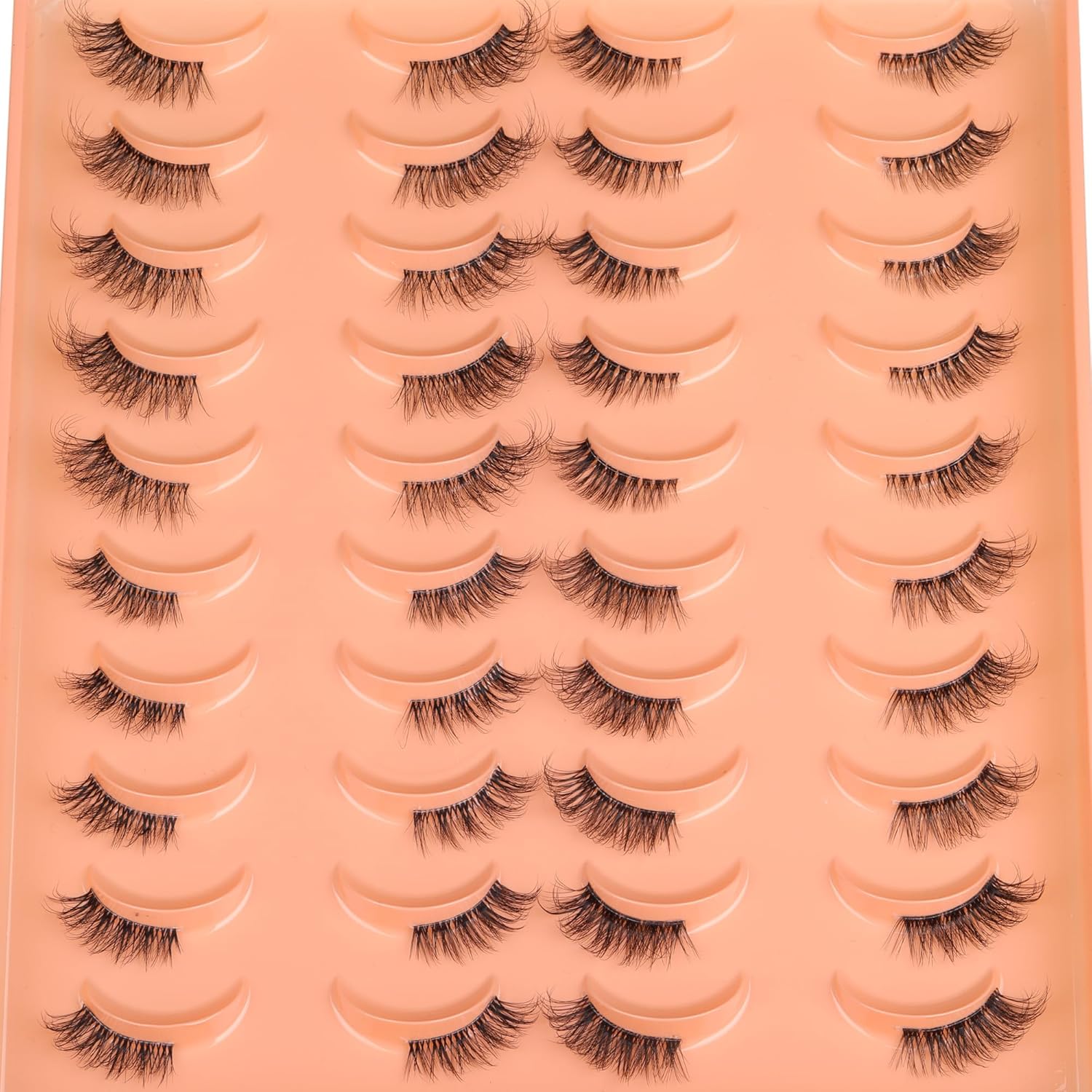 JIMIRE 20 Pairs Hlaf False Eyelashes with Clear Band Half Lashes Wispy Short Accent Lashes 4 Styles Mixed Cat Eye Mink Lashes Fluffy 3/4 Corner Fake Half Lashes Cat Eye Natural Look