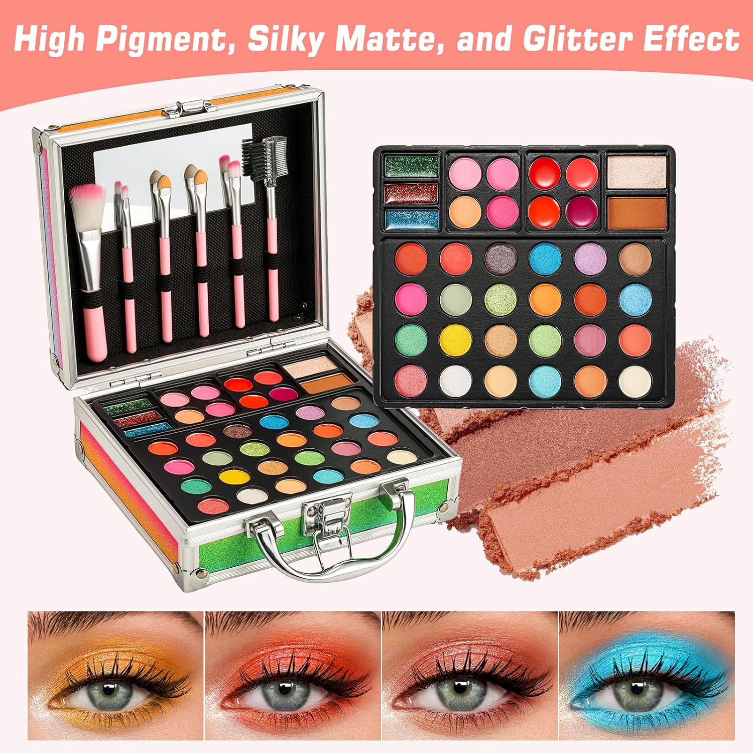 - Ultimate Color Variety: Explore a range of eyeshadows, blushes, lip colors, highlighters, and contours with excellent pigmentation and texture. Create a flawless full-face makeup look with diverse hues and superior quality. Unique temporary tattoo stickers are also included to express individual style.