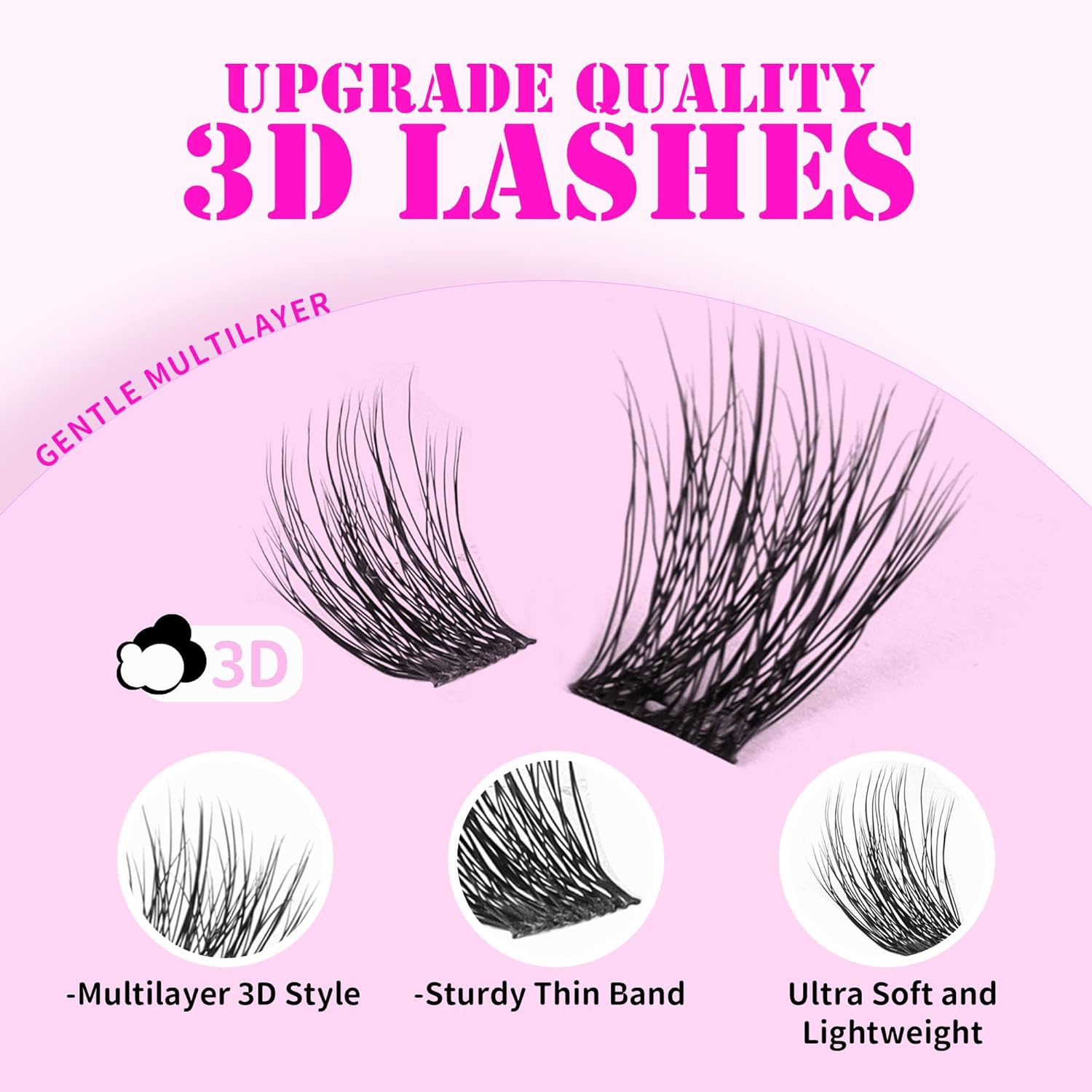 - 【MULTI-LAYER 3D EFFECT】Our lash clusters feature a gentle and natural 3D effect, ensuring a vivid look without appearing messy. They enhance your eyes, making them look stunning from both the side and front views.