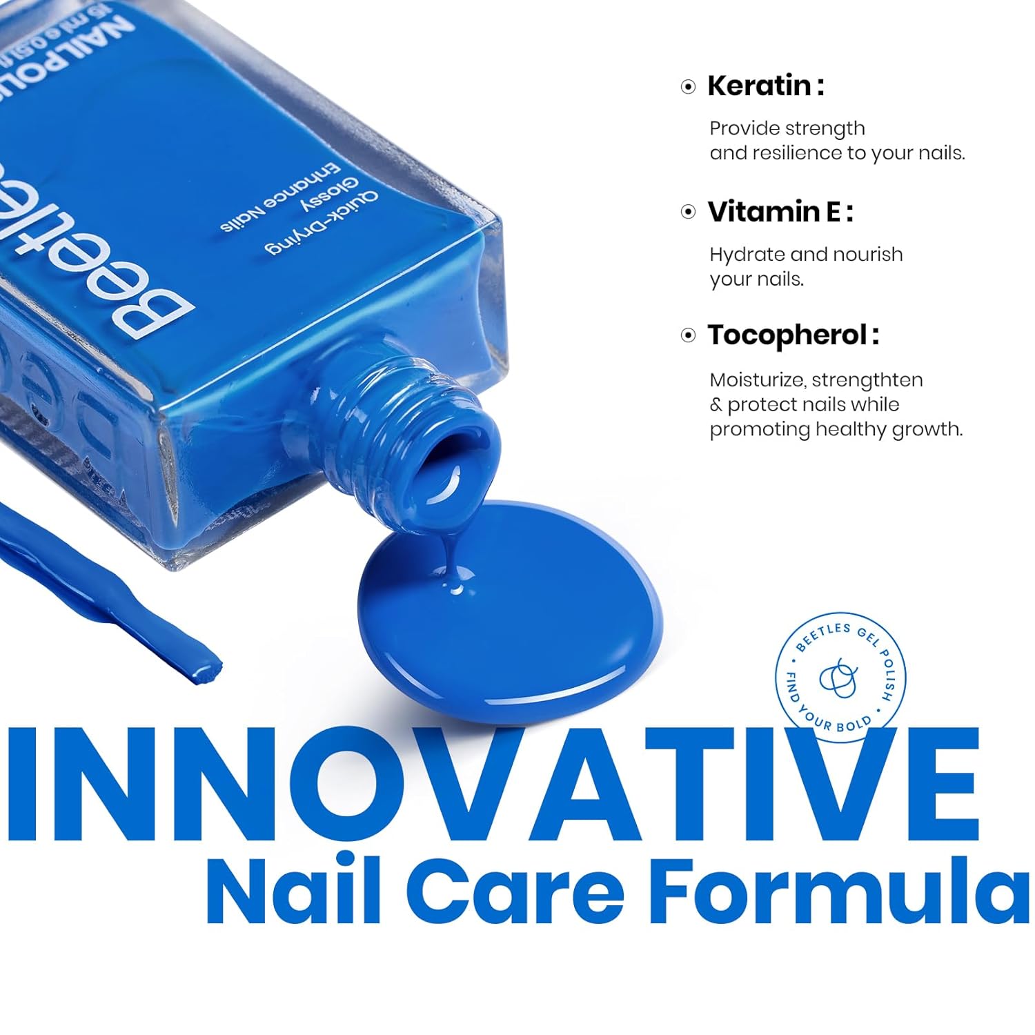Beetles Blue Nail Polish 1Pcs 15ml Paulina Lapis Blue Color Fingernail Polish-Fast Drying & Long Lasting Nail Polish for 4th of July Nail Salon-Quality Results