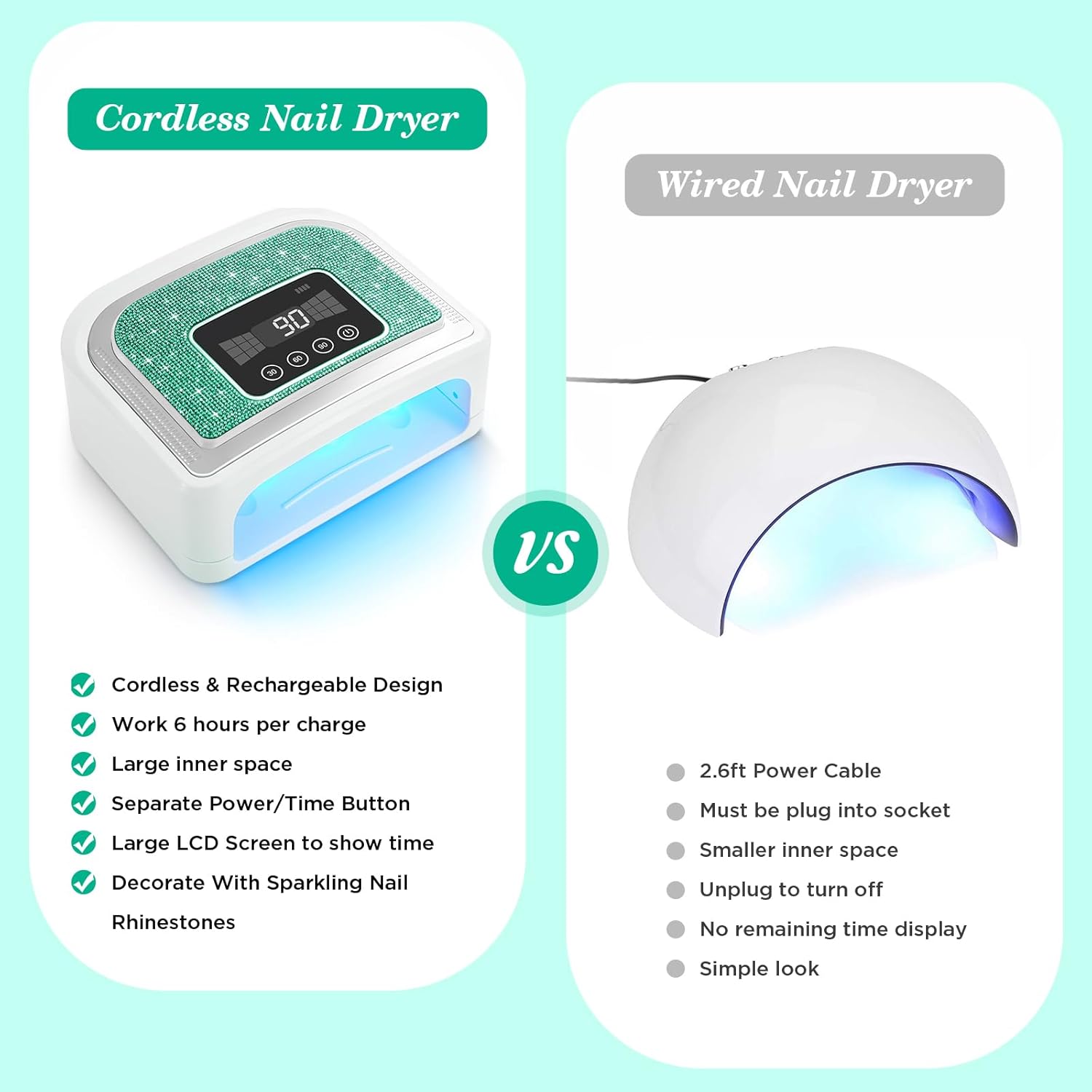 Cordless Nail Lamp, Rechargeable UV Nail Lamp for Gel Nails, LED Nail Lamp with 4 Timer Modes, Gel Nail Light Decorate with Sparkling Nail Rhinestones Diamond (Sparkly Green Diamond)