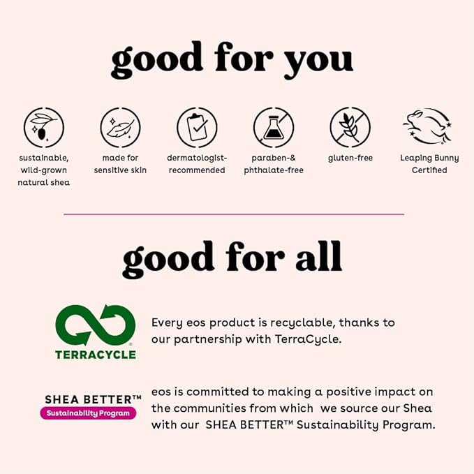 - SUSTAINABLY-SOURCED INGREDIENTS: eos lip balms have wild grown, sustainably sourced, natural shea butter and oil to leave your lips smooth and nourished