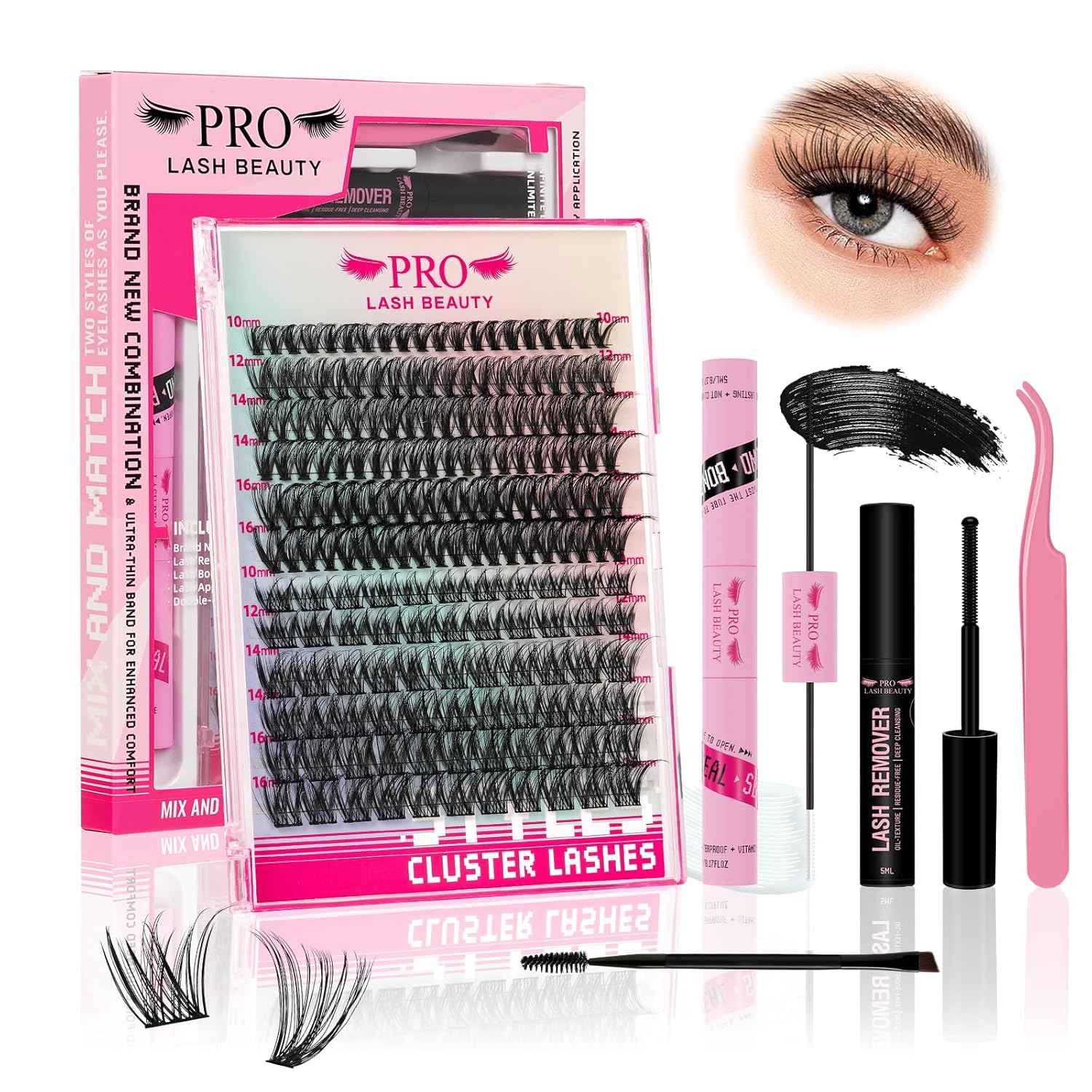 - 192Pcs DIY Lash Extension Kit: PRO DIY Lash Kit includes: 2 tray of eyelash which means120 Pcs individual lashes,72Pcs Cluster Lashe lash Bond and Seal,Lash Remover and lash Applicator .Try to DIY your own lashes now!