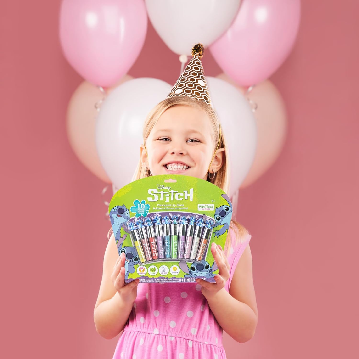 Disney Stitch 10 Piece Plant Based Lip Gloss, Girls Party Favors, First Makeup Set for Girl, Perfect for Parties, Sleepovers, and Birthday Gifts, Ages 3+, by Townley Girl
