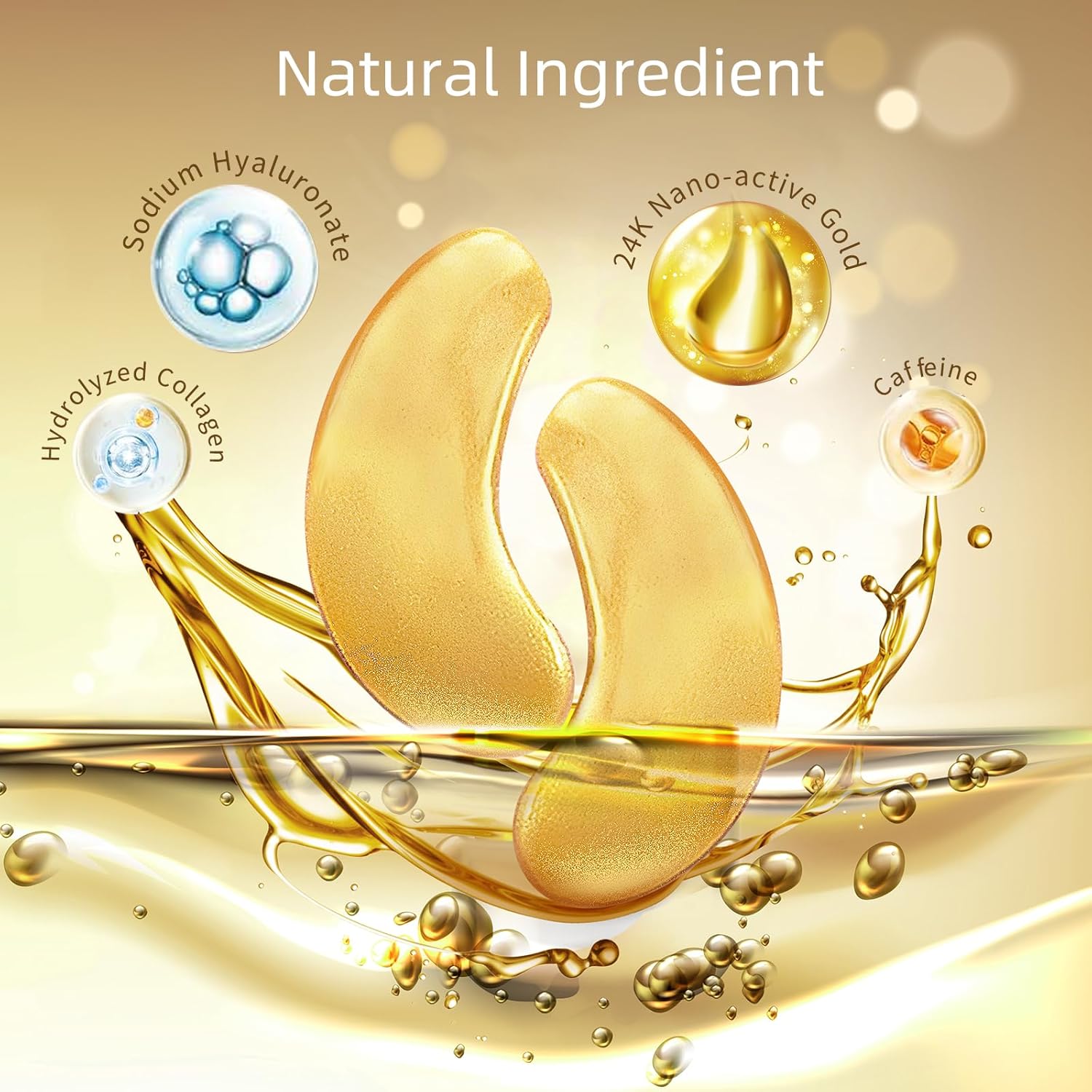 - 【Natural Ingredients】: Our 24K Gold under eye patches for eyes use with natural ingredients which main including Aqua, Glycerin, 24k Gold, Collagen, Niacinamide, Hyaluronic Acid, Aloe Barbadens is Extract, help deeply repair the eye skin, help soothe the skin around the eyes, tighten your eye skin, remains hydrated and vibrant. The under eye patches through clinically tested by our researcher, continuous use can effectively reduces the appearance of dark circles and puffiness.