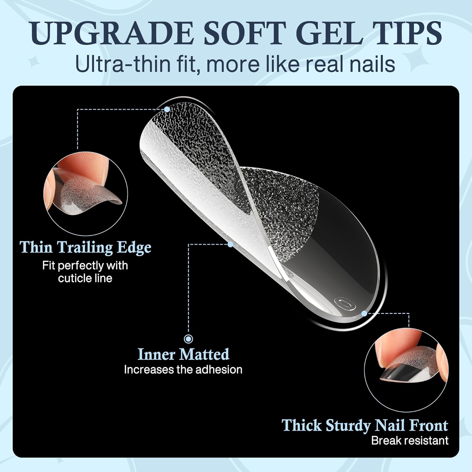 - ❤️ Foldable Soft Gel Tips: Crafted from gelly soft gel material, these fake nails leave no trace even when bent. Their bright clarity allows for easy pressing, trimming, and painting, helping you create your ideal nail shape effortlessly. Perfect for a true DIY manicure.