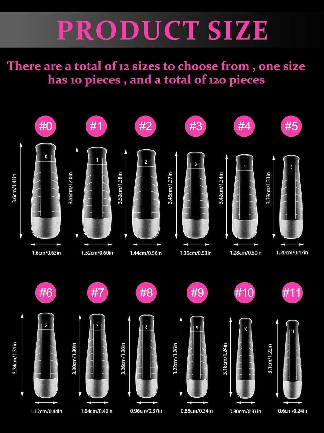 - 【Nail Form Mold with 12 Sizes】120PCS t-shape clear dual forms for poly nail gel offers 12 different nail sizes , and each size of long nail tips is separated by a small grid, a total of 12 grids, so they're easy and convenient to choose the suitable size to meet your nail's need.