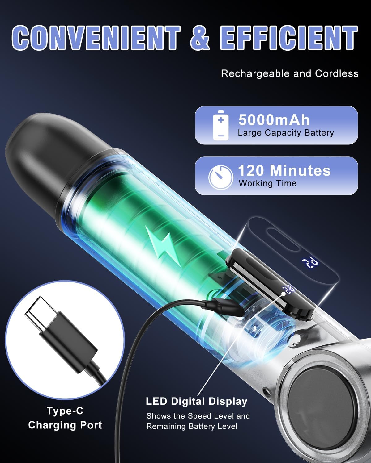 - 【CONVENIENT & EFFICIENT Rechargeable and Cordless】Homtronics Electric Scrubber is equipped with a high-definition LED digital display, which allows you to clearly see the operating speed mode and the remaining power of the work, which helps you to better control the rhythm of cleaning. It also comes with a 5000mAh high-capacity battery that supports 2 hours of long-time cleaning activities. Adopting Type-C charging port design, it is convenient and quick to achieve charging.