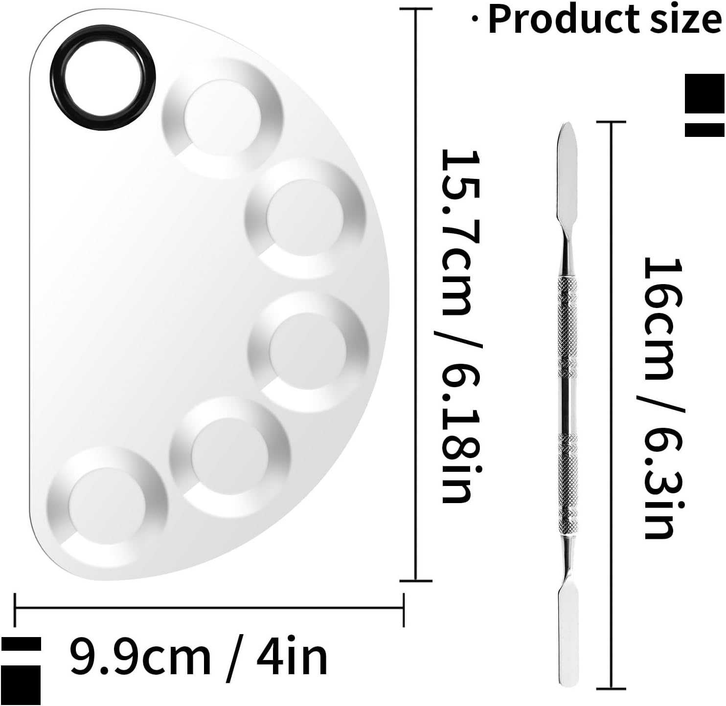 - Makeup Palette Size: The size of nail art palette is 15.7x10cm/6.2*3.9 inches. Foundation spatula length: 15.8cm/6.2 inches.