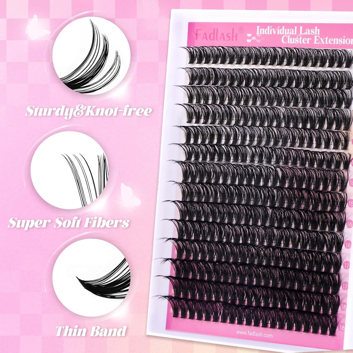 - 【High Quality Lashes】:Cluster lashes are made of premium PBT silk fiber, which is light and soft without knots, Easy to pick up and comfortable to wear, comfortable and light to wear, fast wear to save time,easily create any eyelash extension style of your makeup suitable for any scene.