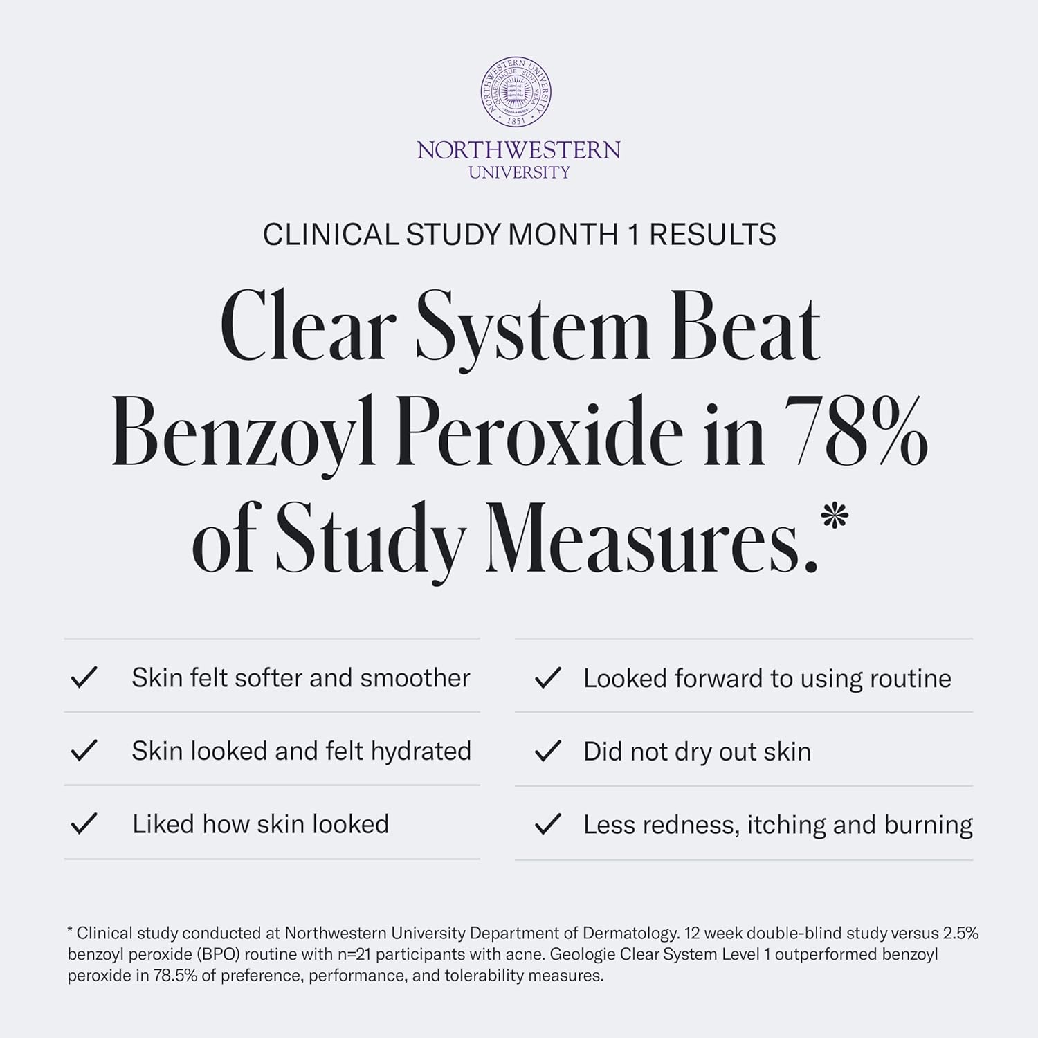 Geologie Clear System | 3-Step Acne Treatment & Skincare Set | Clears Skin Fast | Acne Gel Cleanser, SPF15 Day Cream & Retinol Face Cream For Men & Women | Month 1 / Level 1
