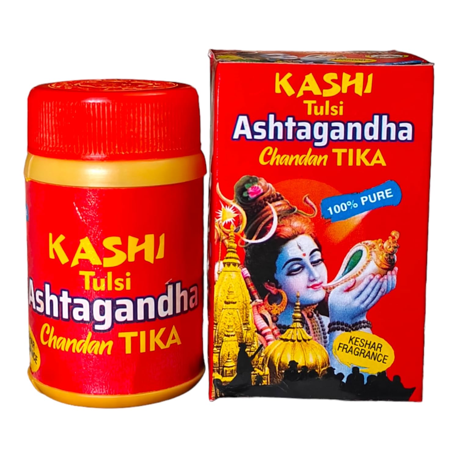 - Authentic Tika Powder: Kashi Tulsi Ashtagandha Chandan Tika is a powdered tika used for pooja rituals and ceremonies.