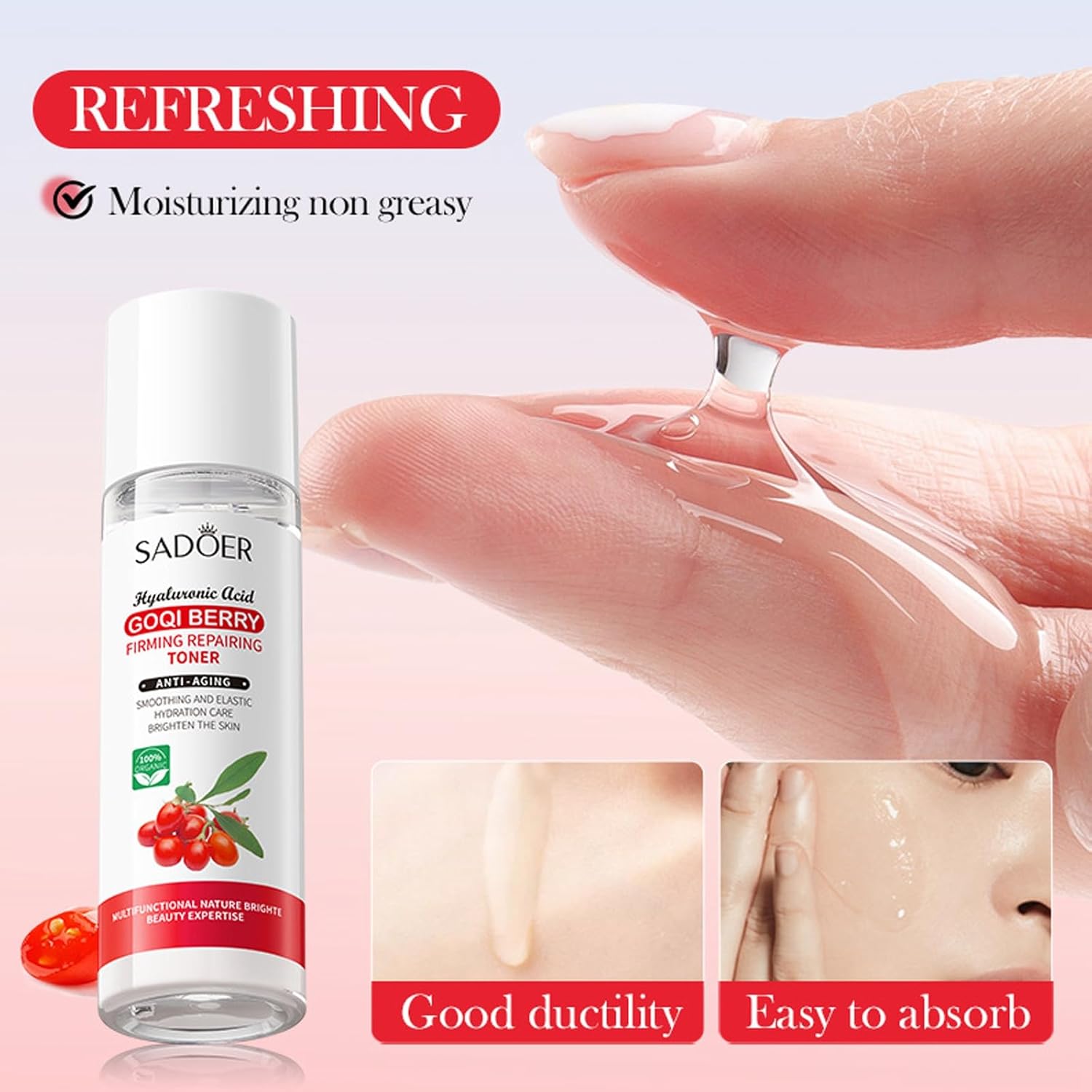 - ๐ใFor All Skin Typeใ- The facial skin care products has a light, moisturizing, and silky texture, which can be quickly absorbed without being greasy or clogging pores, relieving dryness and sensitivity of the skin. Whether you have oily or dry skin, or even sensitive skin, this goji berry skincare kit is a great choice.