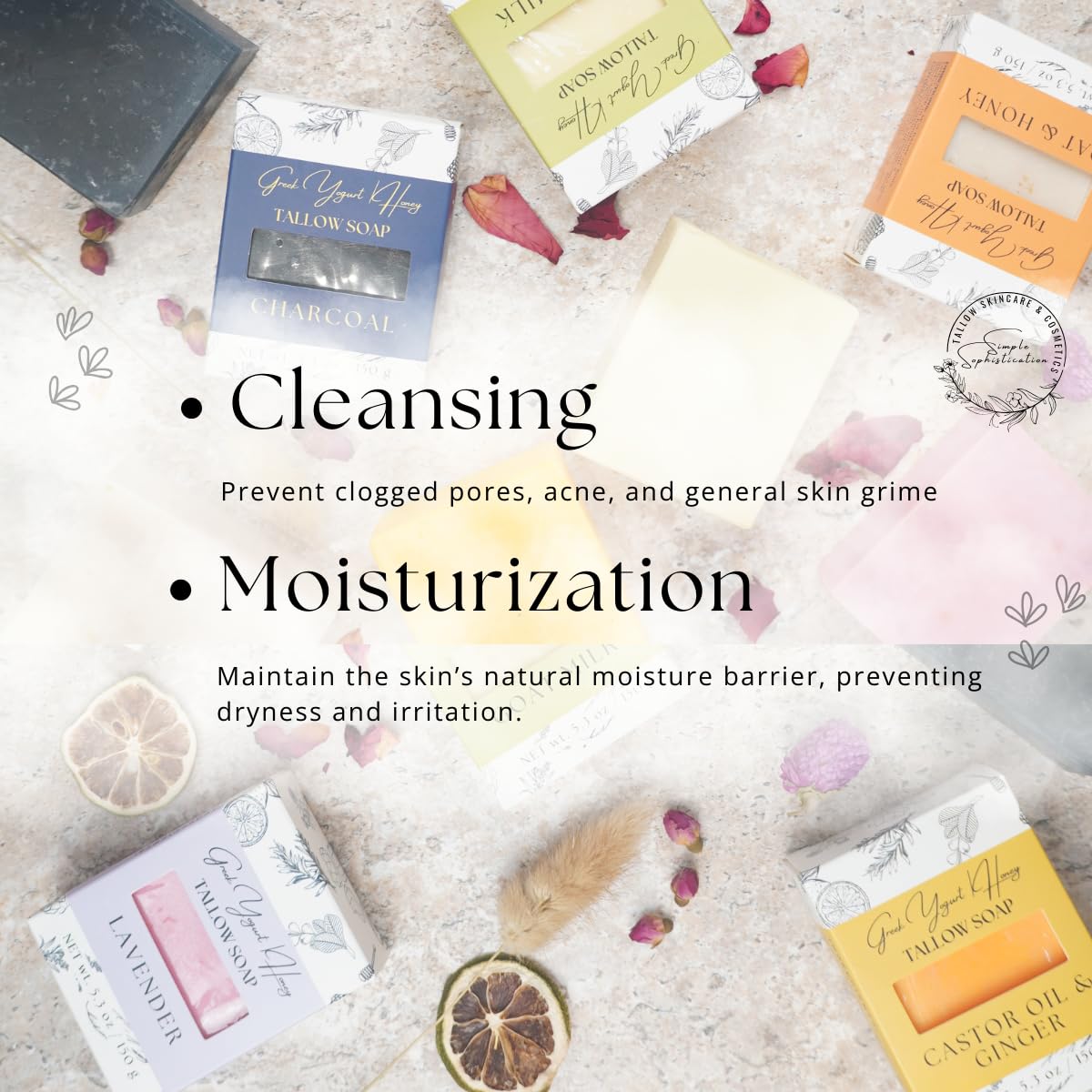 - MOISTURIZING: Our tallow-based soaps are gentle on your skin while effectively cleansing away impurities, leaving your skin feeling fresh and moisturized after cleansing.
