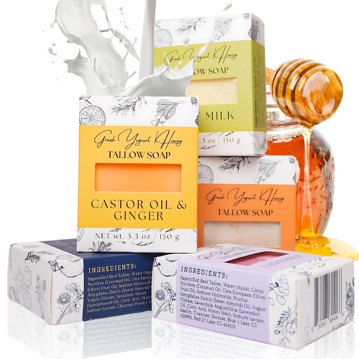 - PREMIUM INGREDIENTS: Each bar is made with a thoughtfully curated blend of ingredients, including beef tallow, which is rich in essential fatty acids that deeply moisturize and pamper your skin.