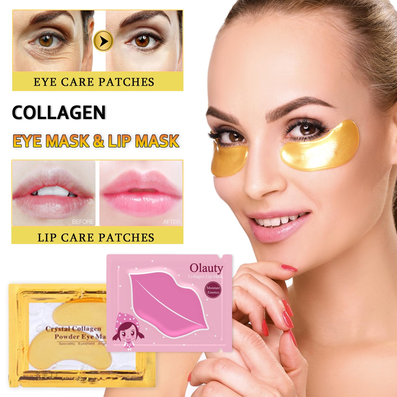 firstfly 30 Pairs Collagen Lip Masks & 24K Gold Eye Masks, Reduce Dark Circles, Puffy Eyes, Undereye Bags, Wrinkles, Effectively Nourishes the Lip & Eye Skin Gel Eye Patches