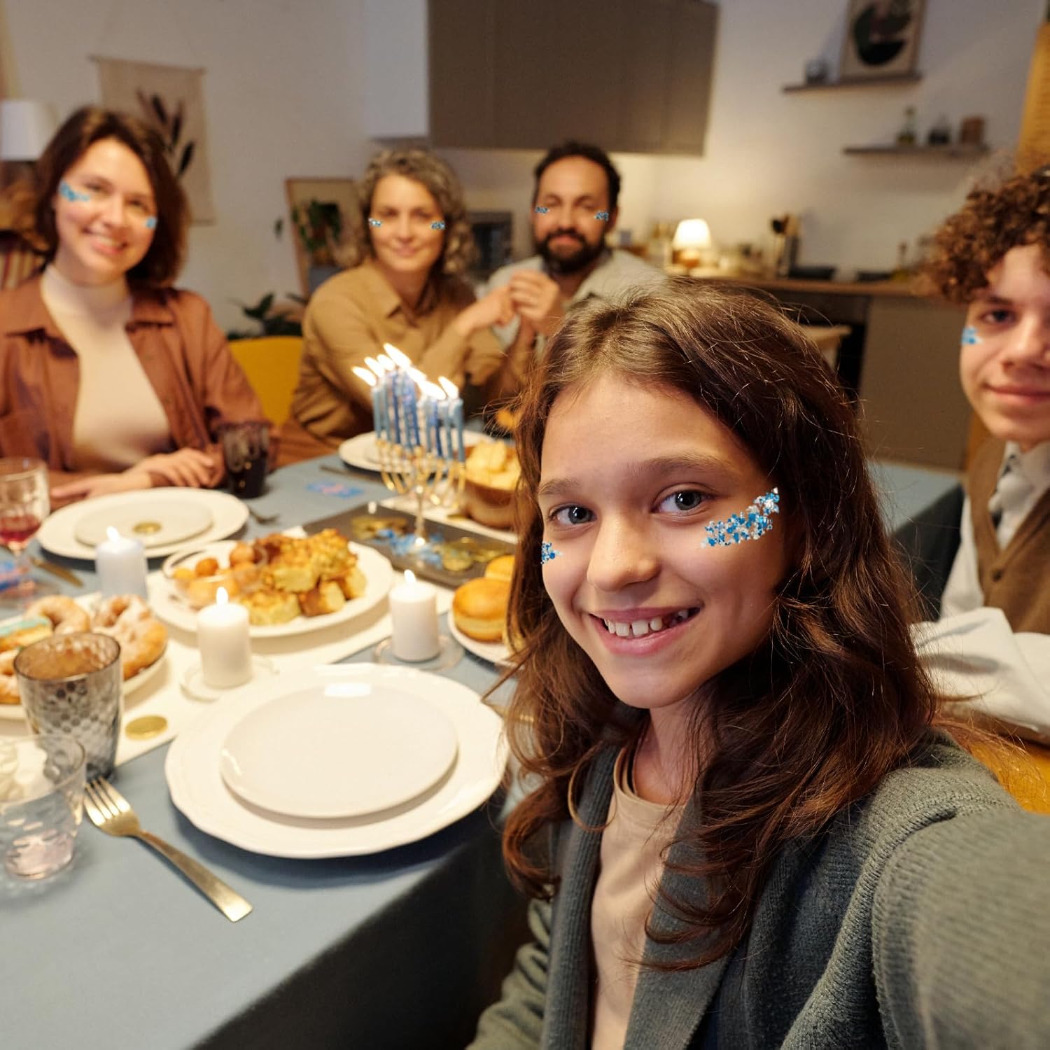 - Hanukkah glitter gel Includes White, Silver and Blue in different shapes and sizes