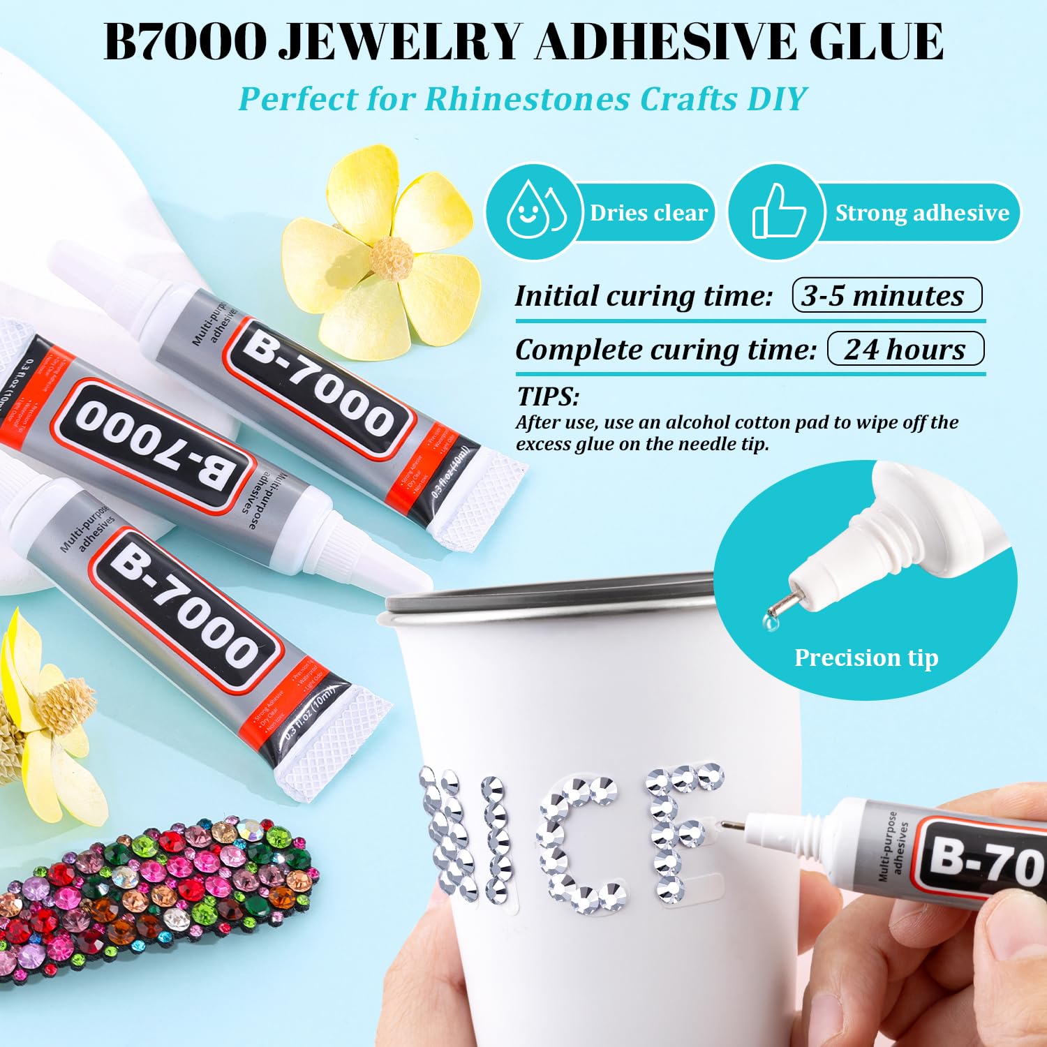 - ๐STRONG B7000 GLUE FOR GEMS -- These Non-Hotfix rhinestones are not self-adhesive and need to be used by glue. The equipped B7000 glue has strong adhesion and dries clear. It has a precision needle for easy application. For first use, you can leave the glue head up for a few minutes before opening to avoid overflow. After use, the needle needs to be cleaned with an alcohol wipe so as to avoid a mess.