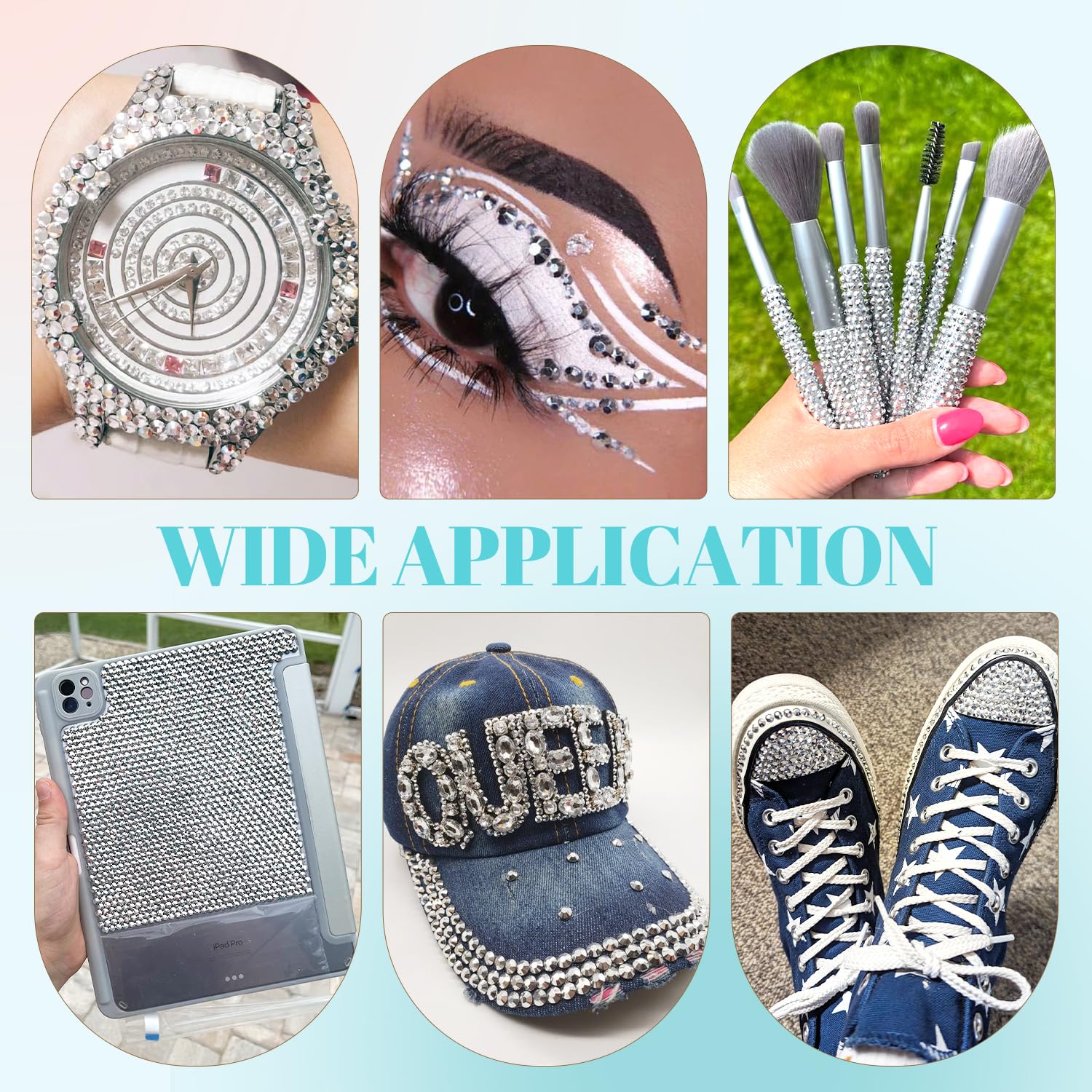 - ๐WIDE APPLICATION -- These sparkling iridescent resin crystals are perfect for creating dazzling looks. Use them for bedazzling DIY crafts like shoes, tumblers, mugs, bottles, phone cases, popsockets, scrapbooks, photo frames, diamond paintings, greeting cards, bags, glasses, guitars, keychains, hats, masks, hair clips, bracelets, wristbands, clothing, wedding dresses, and more. Apply it to what you want to bling!