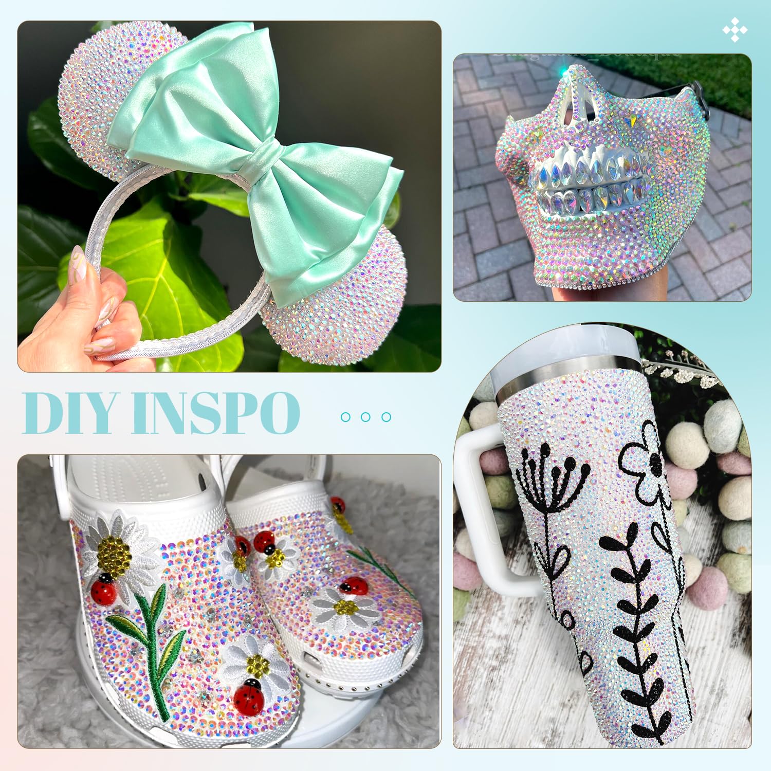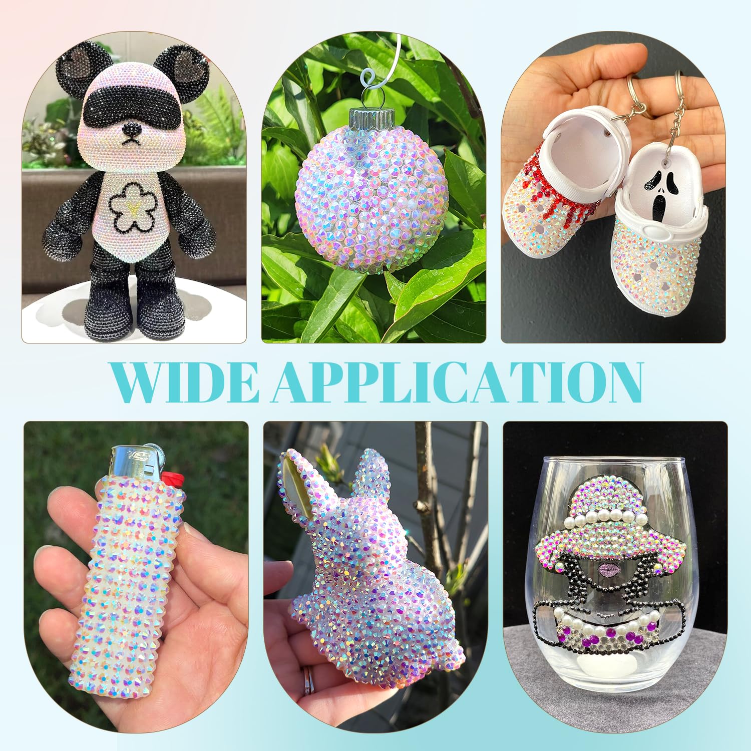 - ๐WIDE APPLICATION -- These sparkling iridescent resin crystals are perfect for creating dazzling looks. Use them for bedazzling DIY crafts like shoes, tumblers, mugs, bottles, phone cases, popsockets, scrapbooks, photo frames, diamond paintings, greeting cards, bags, glasses, guitars, keychains, hats, masks, hair clips, bracelets, wristbands, clothing, wedding dresses, and more. Apply it to what you want to bling!