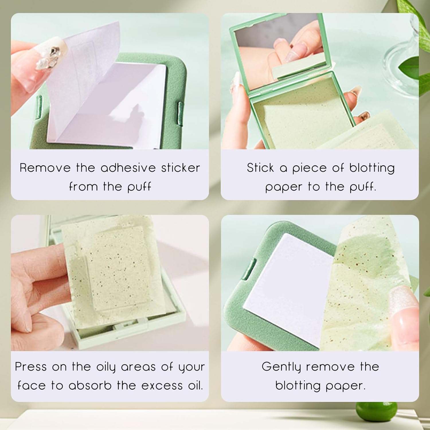 200 Oil Blotting Sheets for Face, Portable Oil Control Film with Mirror & Puff Not Destroy Base Makeup Face Oil Absorbing Sheets for Women & Men, Face Oil Control On The Go (Green Tea, 200)