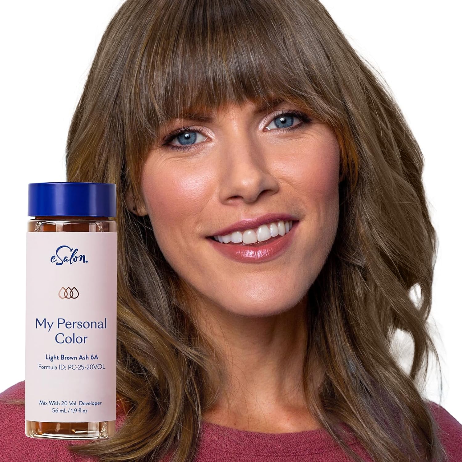 eSalon Permanent Hair Color & Hair Dye Complete Kit - Personal Colorist Kit for Up To 100% Gray Coverage for All Hair Types - Professional-Grade Ammonia-Free Hair Dye (Light Brown Ash 6A)