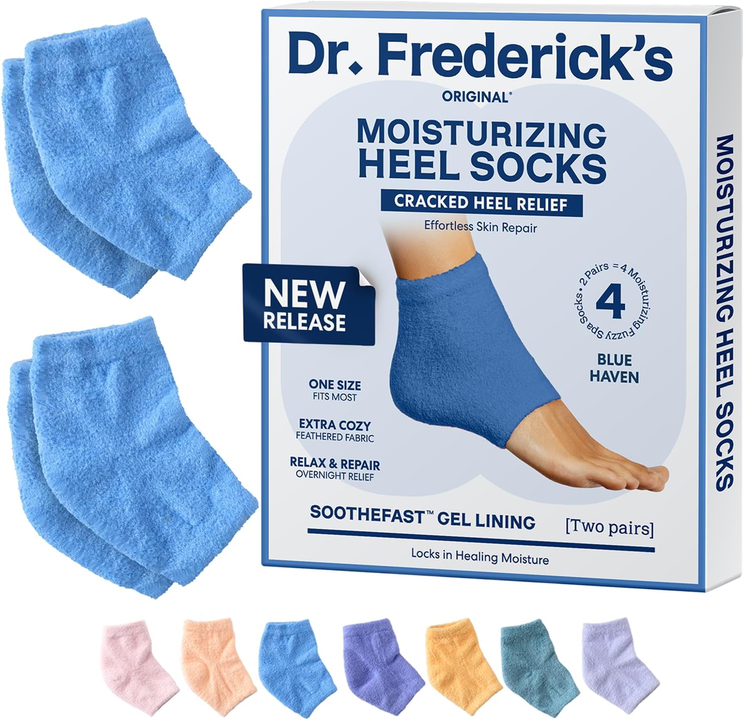 Dr. Frederick's Original Moisturizing Fuzzy Heel Socks - 2 Pairs - Cozy Gel-Lined Sleep Socks for Women & Men - Soothes Dry, Cracked Feet - Heel Repair - Blue Haven