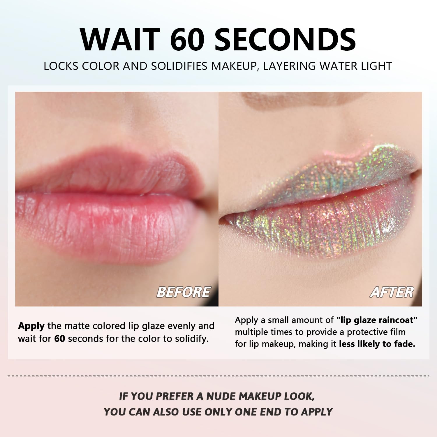 CHARMACY 2 In 1 Multichrome Moisturizing Lip Gloss, Double Head Liquid Lipstick, Mirror Waterproof Long Lasting No Fading Lip Balm, Hydrating Lip Plumper Waterlight Glossy Makeup #004