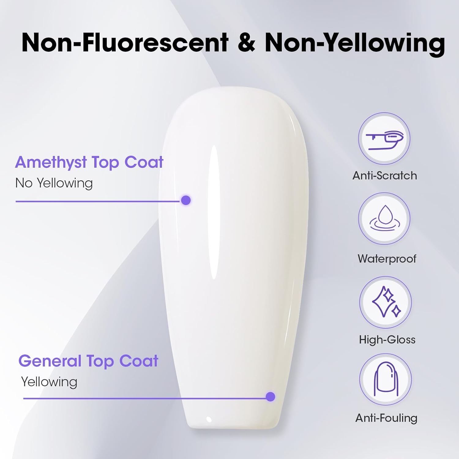 - Superior Performance: Gellen’s Amethyst Builder Top Coat has a mauve tint but is highly translucent and non-fluorescent, allowing the underlying color of your gel polish to shine through. Ultra-sticky construction that refuses to buckle; Diamond hardness, not easy to break; Moderate flow rate, easy to use.
