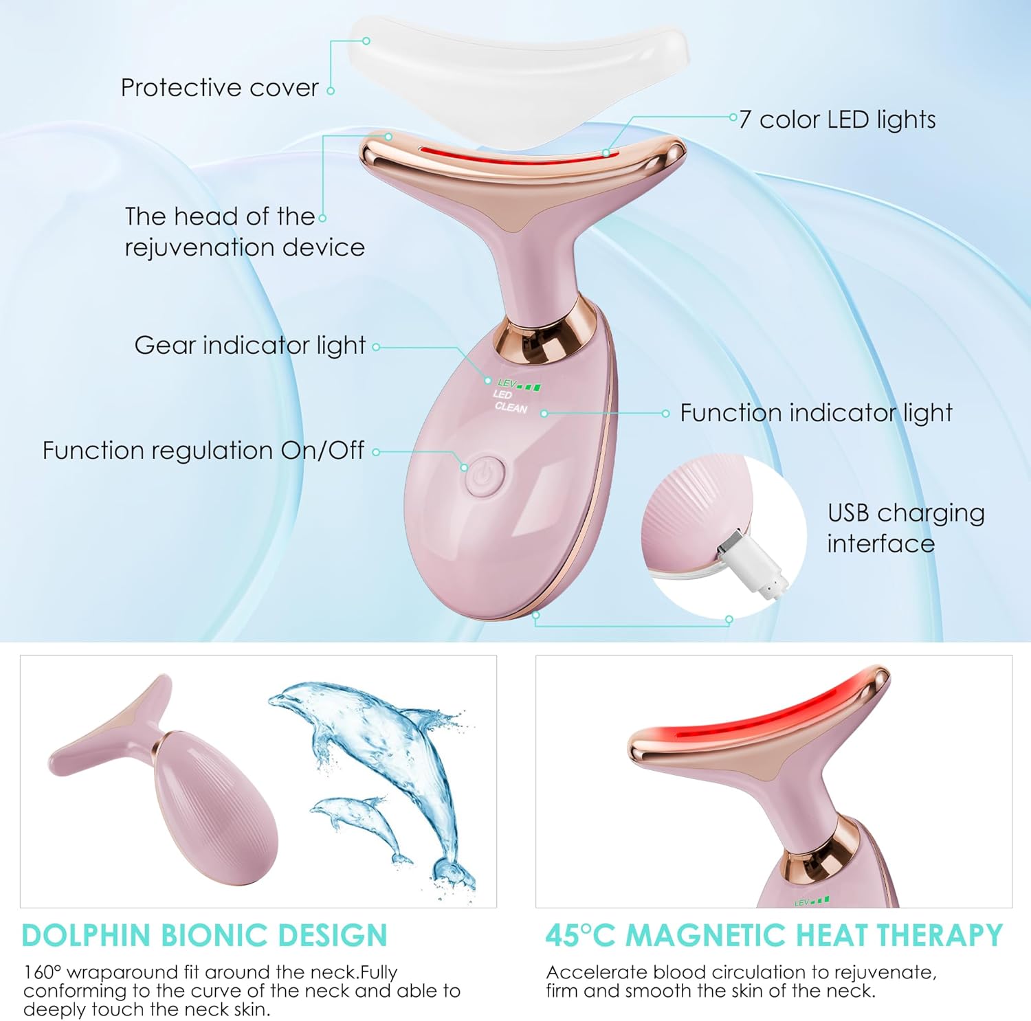 Facial Massager Red-Light-Therapy-for-Face and Neck, Face π² culpting Wand with 7 Color - Birthday, Christmas, Mothers Day, Valentines Day Gifts for Her Women Mom Best Friend Wife Teacher (Rose Gold)