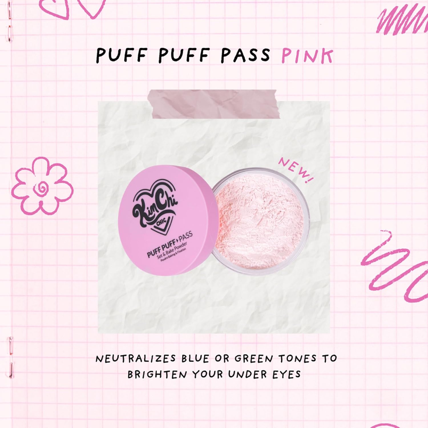 Kimchi Chic Beauty Puff Puff Pass Set and Bake Setting Powder for Makeup, Extra Fluffy Loose Face Powder Poof, Soft Natural Face Makeup for Uneven Skin Tone, 09 Pink